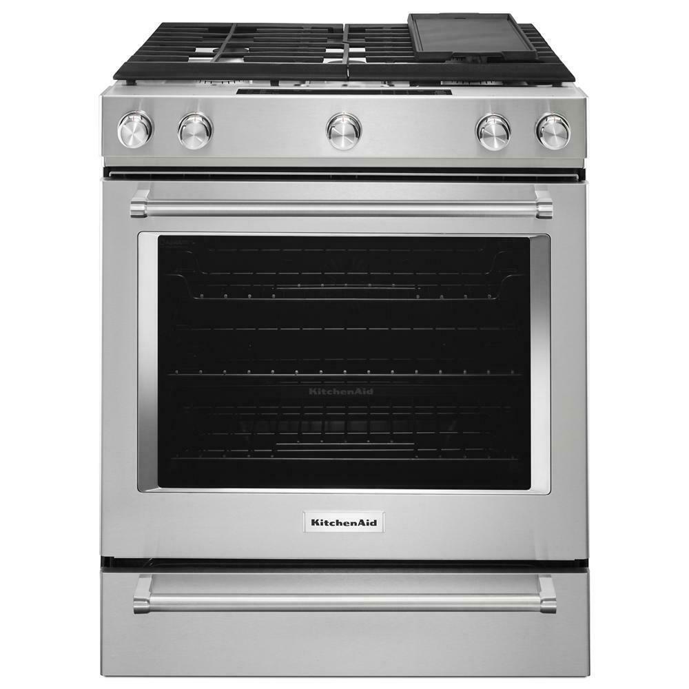 Kitchenaid KSDB900ESS 30-Inch 5-Burner Dual Fuel Convection Slide-In Range with Baking Drawer