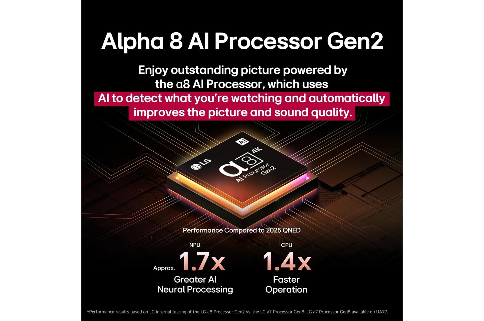 - The Alpha 8 AI Processor Gen2 provides advanced AI for optimized images and audio