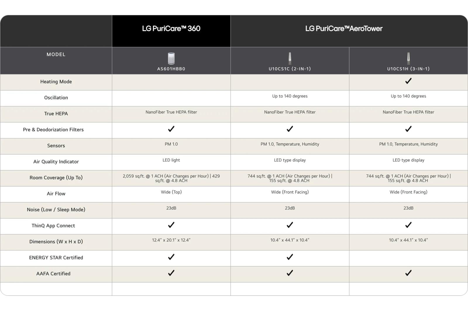 | Air Purifier ThinQ® Smart Features | |