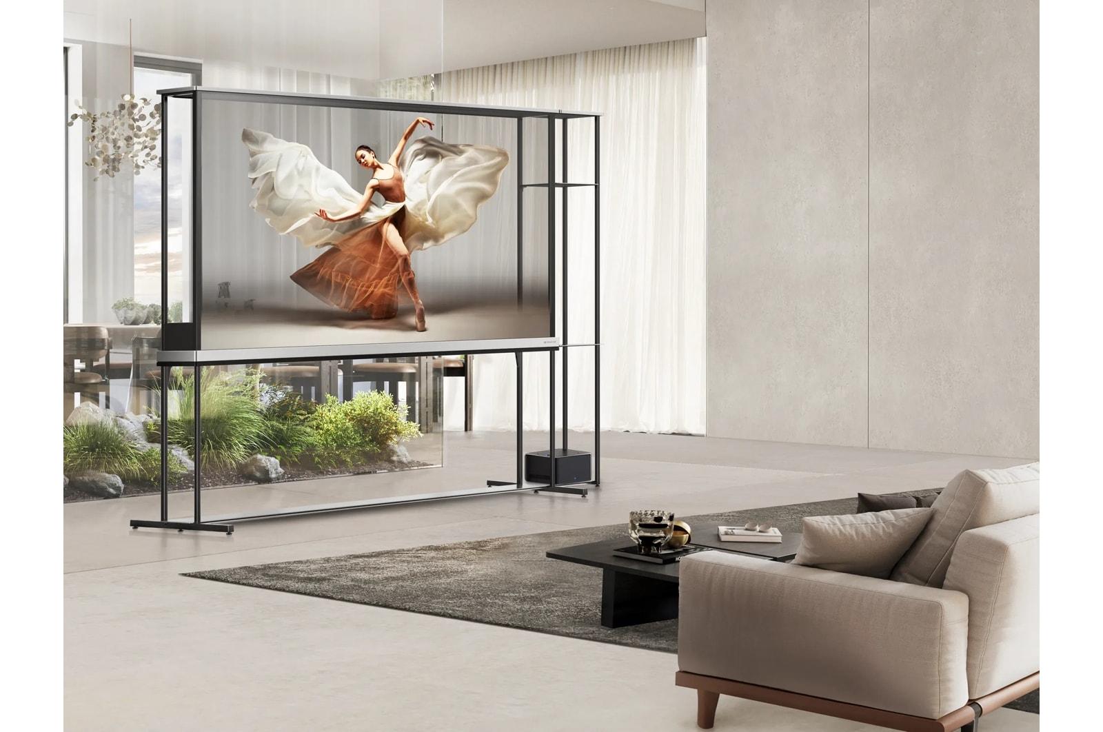 - Retractable black shade to transition between standard OLED TV and beautiful, transparent display