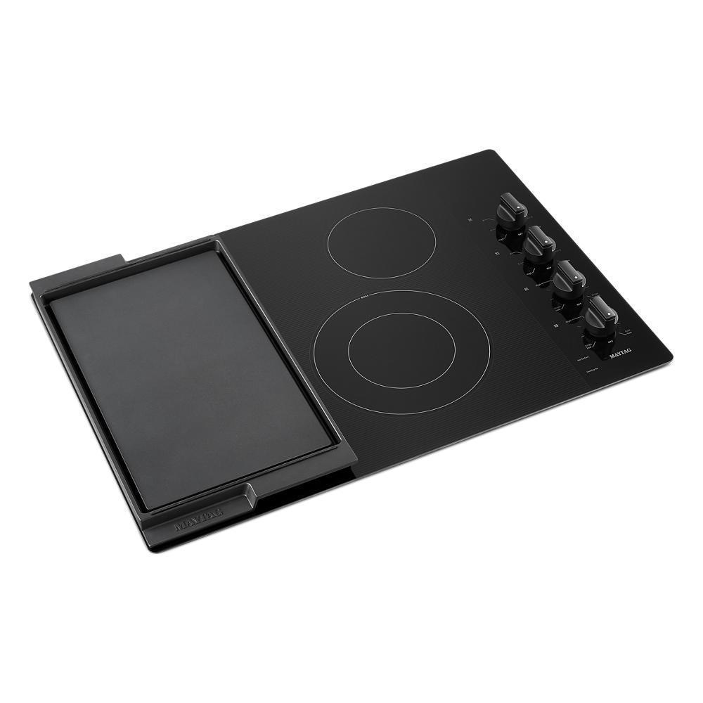 You're in control with the Maytag® exclusive electric cooktop with reversible grill and griddle. Sizzle food on powerful elements, with or without the included reversible grill and griddle. Or fire up the 10/6-inch Dual-Choice™ element of the glass cooktop with the pan you want and the power you need. Plus, we stand behind it witha 10-year limited parts warranty.