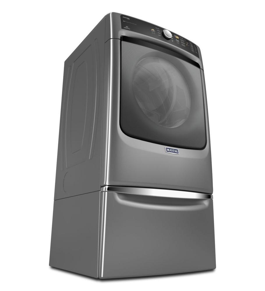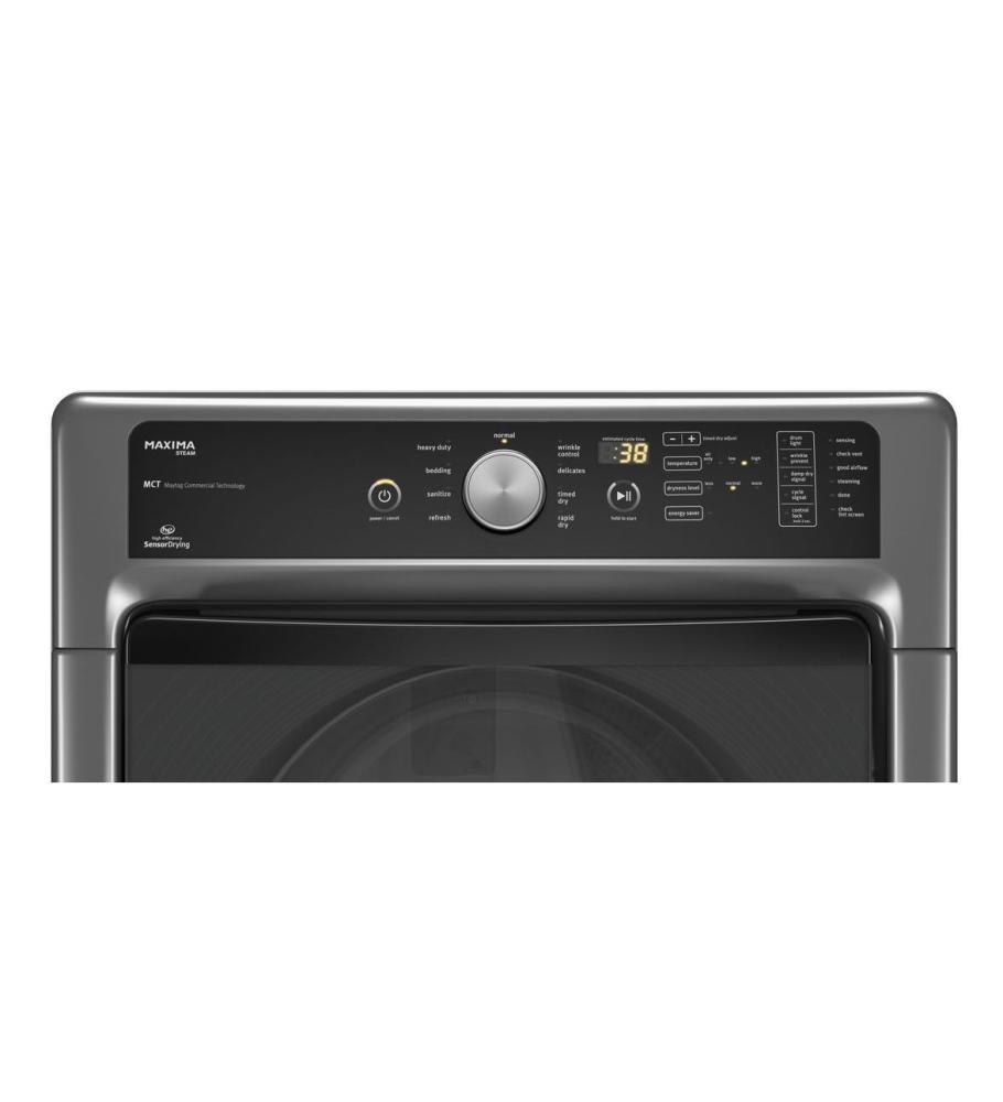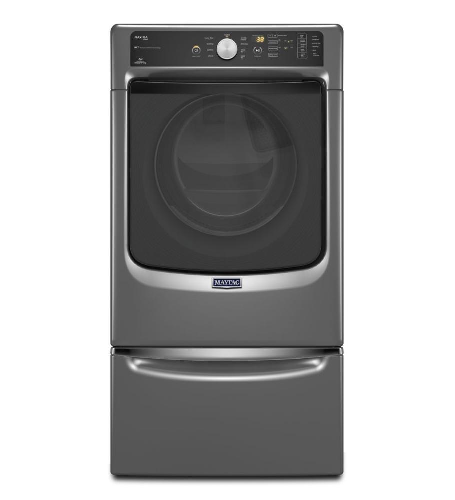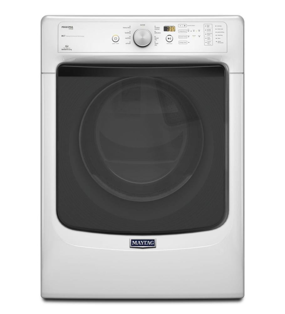 Give your outfit a quick touch-up and reduce wrinkles and odors with this front load dryer's Refresh cycle with Steam. And, with 7.3 cu. ft. capacity and help from Advanced Moisture Sensing, this steam dryer has the space to keep your largest loads evenly dried 2 .* An extra interior fin helps small loads tumble better and dry evenly. You'll even be able to reduce wrinkles both during and after the cycle with the Wrinkle Control cycle and Wrinkle Prevent option. Our 10-year limited parts warranty 1 ** on the drive motor and dryer drum lets you know this Maxima® dryer will provide excellent drying for years. And we're proud to say: not only is this front load dryer designed, engineered and assembled in the U.S.A., it now joins the industry-first line of Maytag® electric dryers that are ENERGY STAR® qualified.