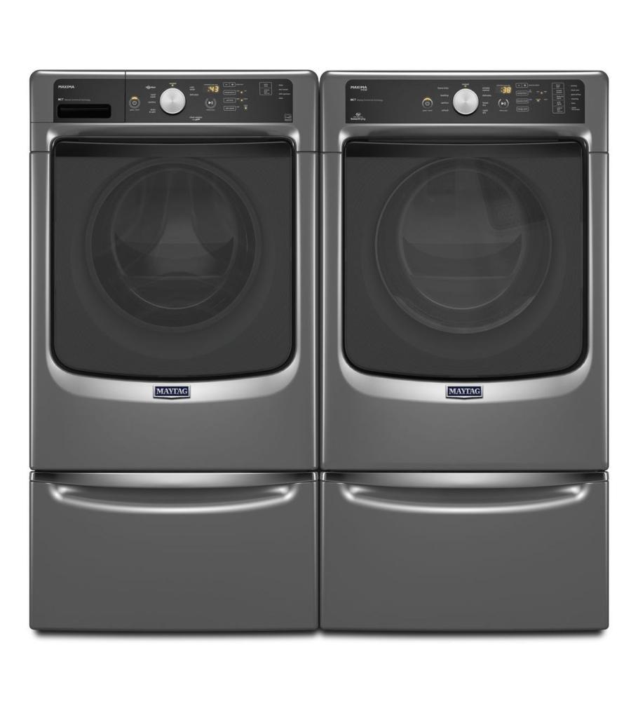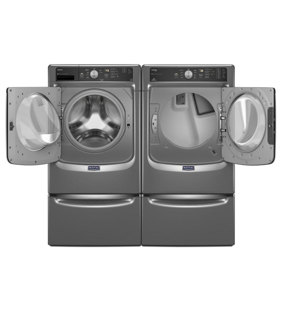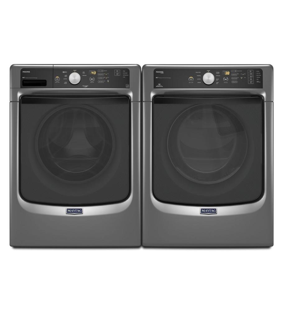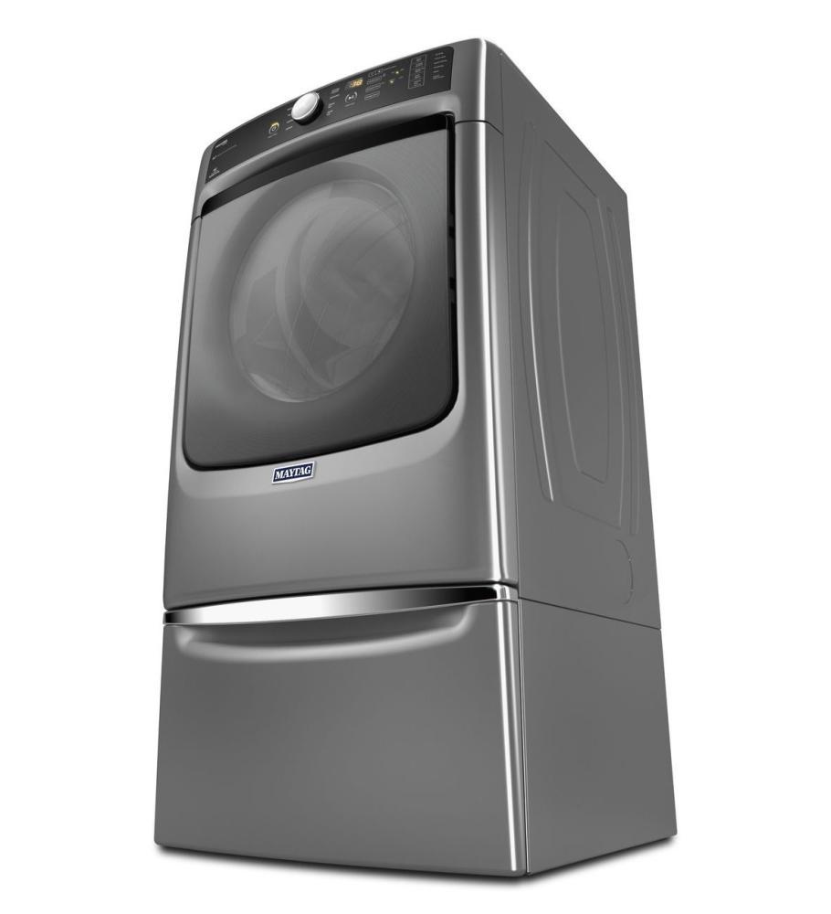 Give your outfit a quick touch-up and reduce wrinkles and odors with this front load dryer's Refresh cycle with Steam. And, with 7.3 cu. ft. capacity and help from Advanced Moisture Sensing, this steam dryer has the space to keep your largest loads evenly dried 2 .* An extra interior fin helps small loads tumble better and dry evenly. You'll even be able to reduce wrinkles both during and after the cycle with the Wrinkle Control cycle and Wrinkle Prevent option. Our 10-year limited parts warranty 1 ** on the drive motor and dryer drum lets you know this Maxima® dryer will provide excellent drying for years. And we're proud to say: not only is this front load dryer designed, engineered and assembled in the U.S.A., it now joins the industry-first line of Maytag® electric dryers that are ENERGY STAR® qualified.
