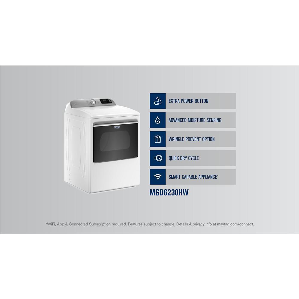 Extra Power boosts drying power to get thick fabrics drier the first time.* Advanced Moisture Sensing monitors inside moisture and air temperatures to help evenly dry loads. Dry a small load fast with the Quick Dry cycle, which pairs nicely with the Quick Wash cycle on select Maytag® washers to get clothes ready in no time. The Wrinkle Prevent option runs for up to 150 minutes after the cycle has ended to keep wrinkles from forming as the dryer continues to tumble. Smart features help you stay in control and efficiently manage laundry from anywhere.** Use the Maytag™ app to remotely start or stop your appliance and get end of cycle notifications so no load is left behind. Plus, troubleshoot select issues to avoid unnecessary service calls. *Results may vary based on load size and type. **Appliance must be set to remote enable. WiFi & App Required. Features subject to change. Details & privacy info at maytag.com/connect.