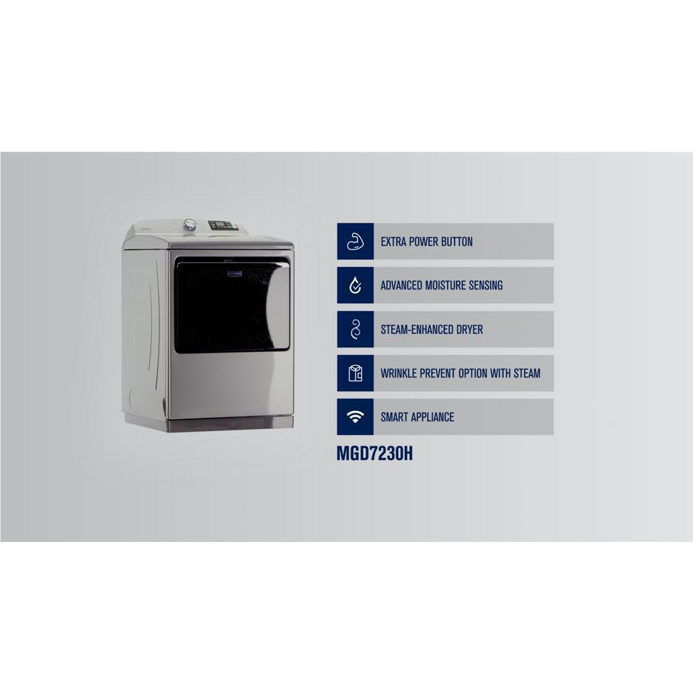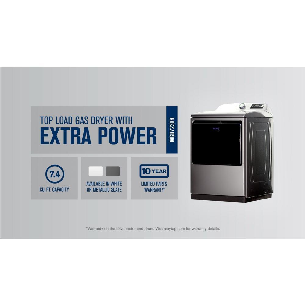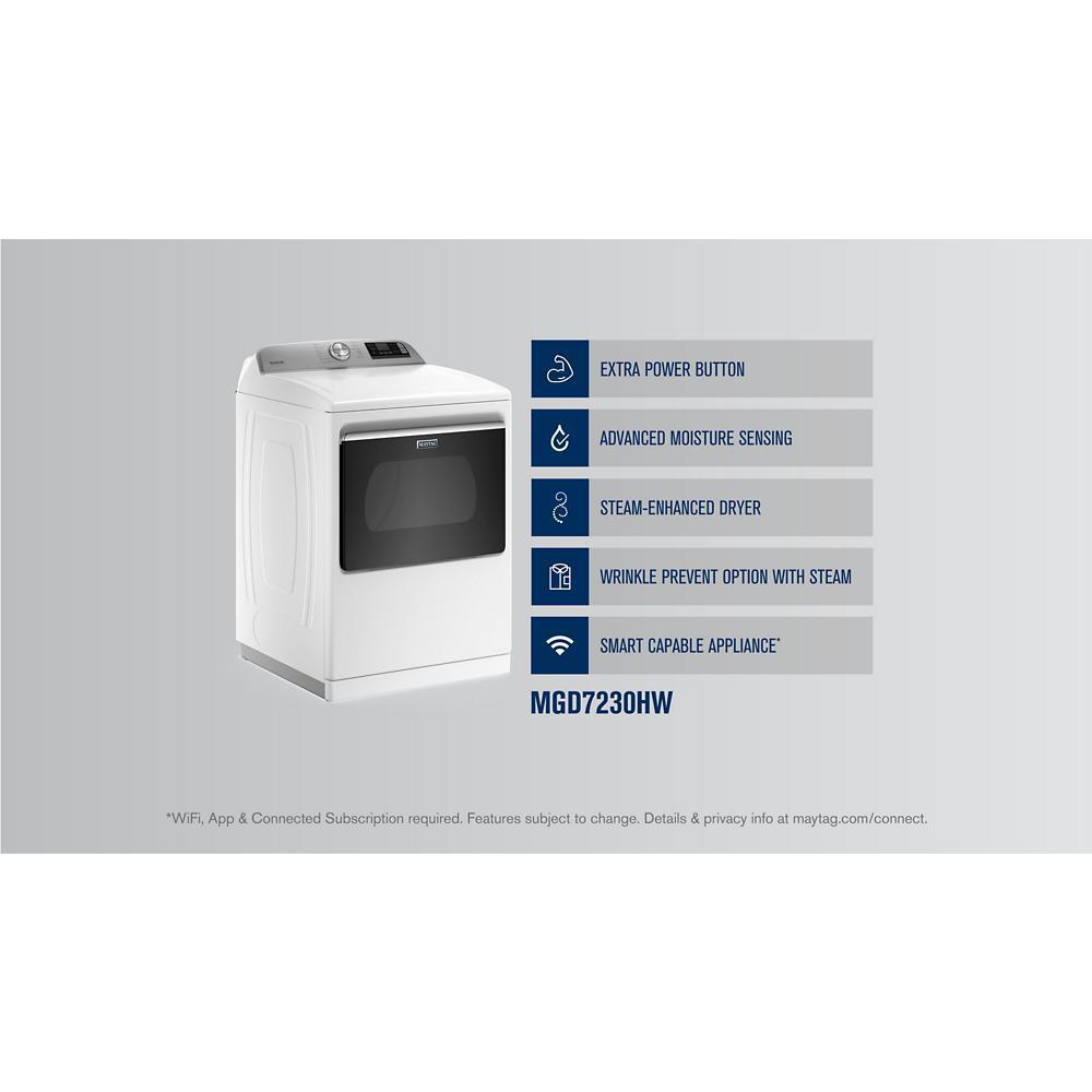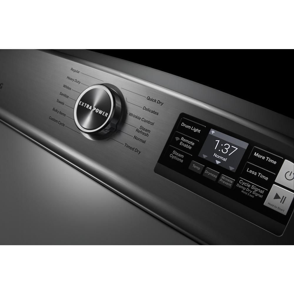 Extra Power boosts drying power to get thick fabrics drier the first time.* Advanced Moisture Sensing monitors inside moisture and air temperatures to help evenly dry loads. Steam-enhanced cycles and options help prevent wrinkles, refresh clothes and reduce static. Dry a small load fast with the Quick Dry cycle, which pairs nicely with the Quick Wash cycle on select Maytag® washers to get clothes ready in no time. Smart features help you stay in control and efficiently manage laundry from anywhere.** Use the Maytag™ app to remotely start or stop your appliance and get end of cycle notifications so no load is left behind. Plus, troubleshoot select issues to avoid unnecessary service calls. *Results may vary based on load size and type. **Appliance must be set to remote enable. WiFi & App Required. Features subject to change. Details & privacy info at maytag.com/connect.