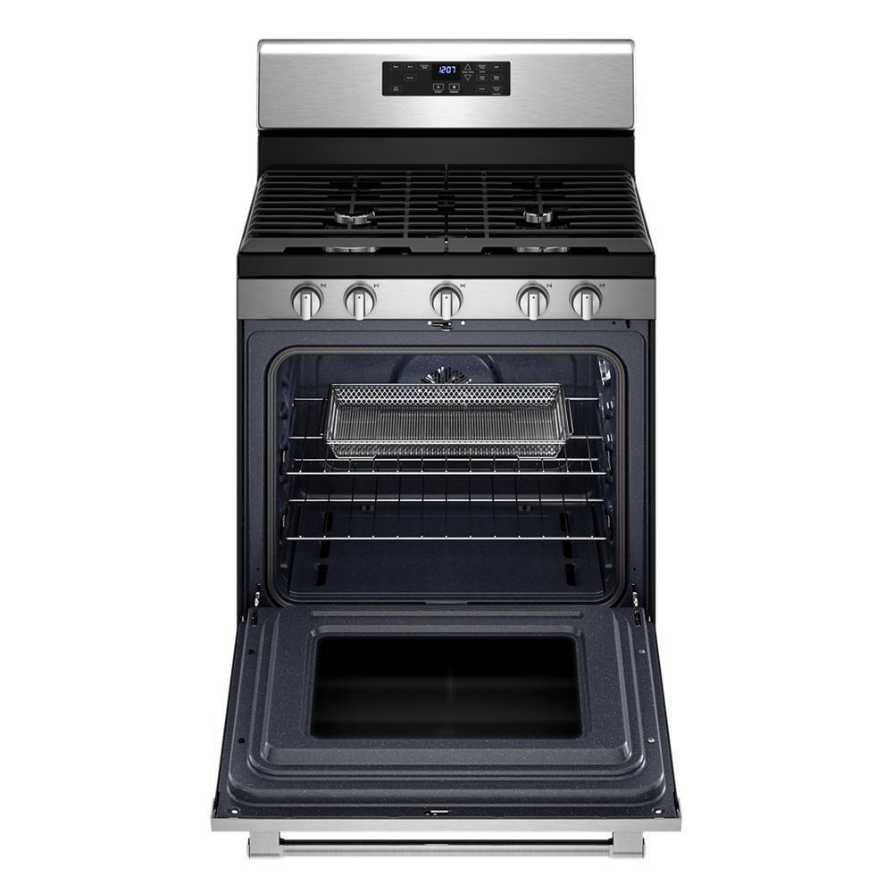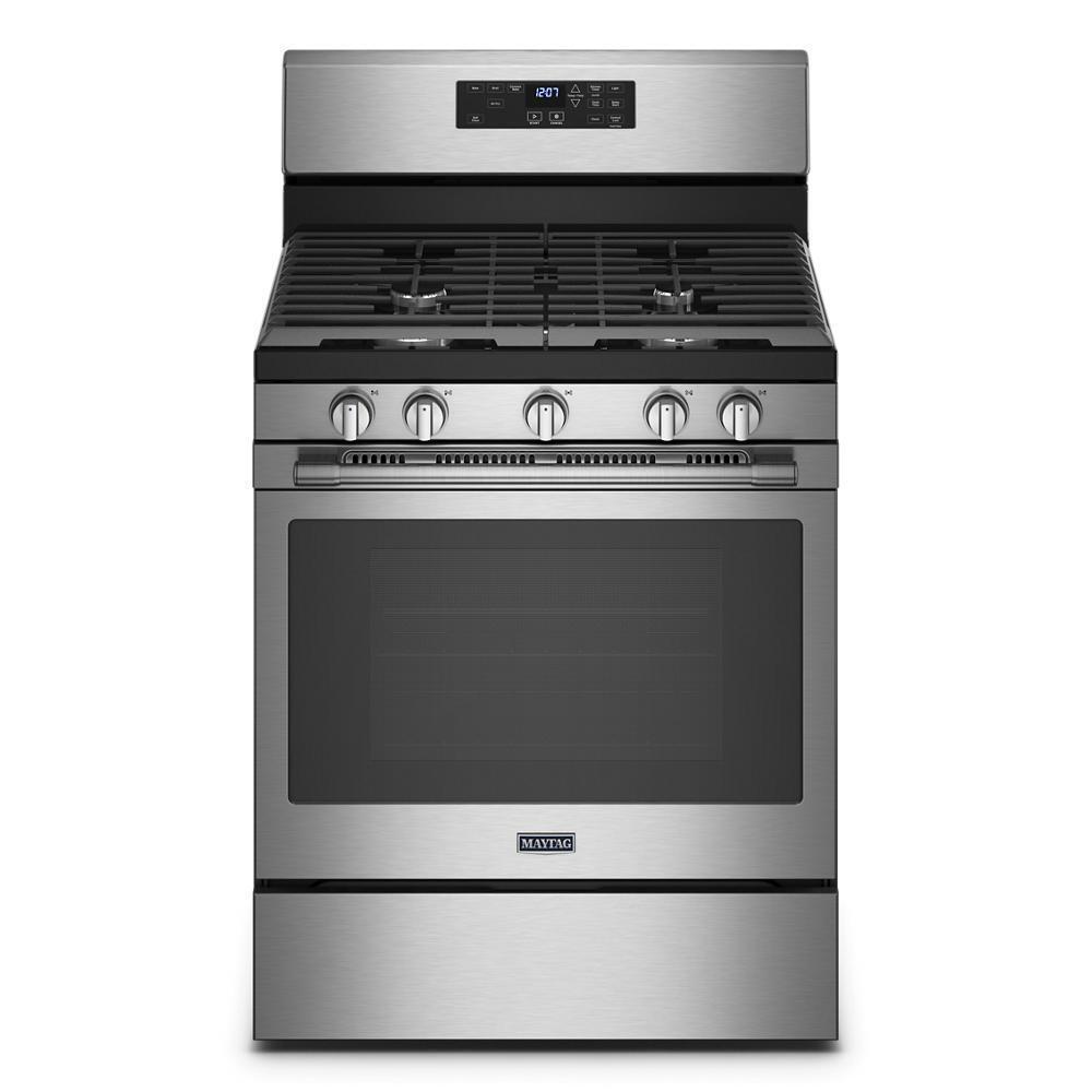 This Maytag® gas range with air fryer is here to cook the foods you want, when you want them. Use the included oven air fry basket to air fry your favorites and then toss it in the dishwasher for easy cleanup. Don t worry about rotating your dishes while you cook-fan convection cooking circulates hot air around your oven so you can cook your whole meal at once. The Delay Bake setting is ready to bake when you are, giving you the ability to schedule when you want baking to begin. When you re done cooking, high temp self clean will fight the toughest baked-on foods to keep your gas range with air fryer looking clean.