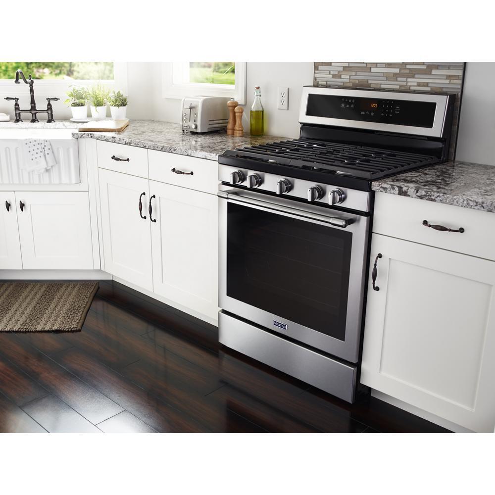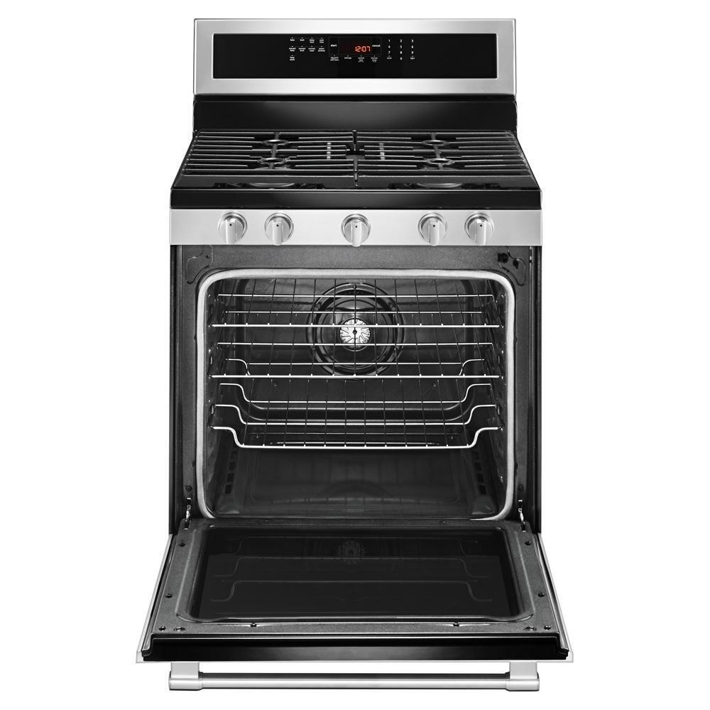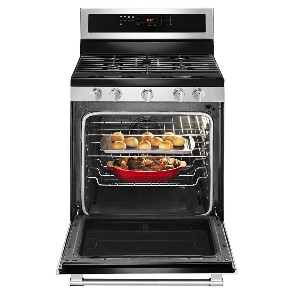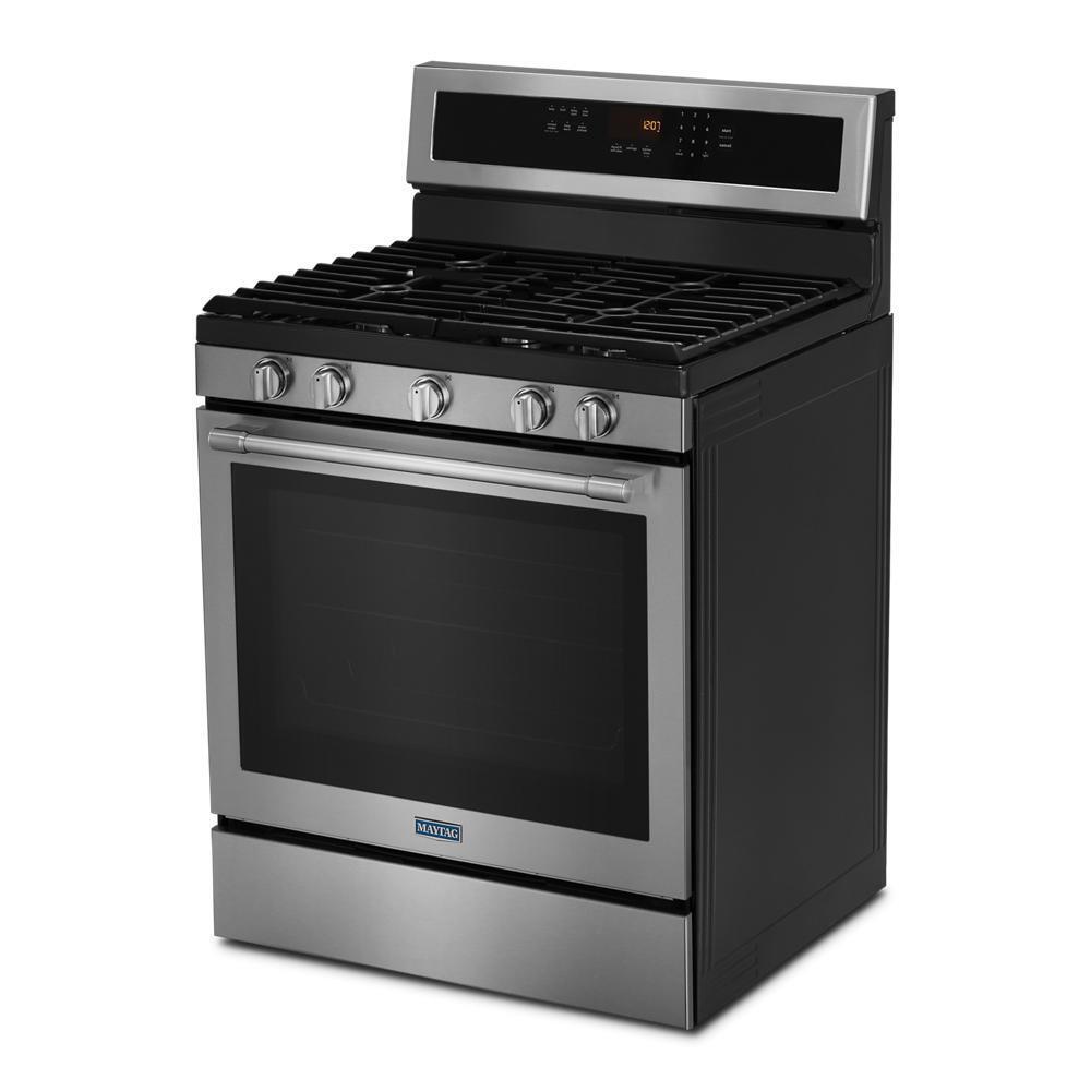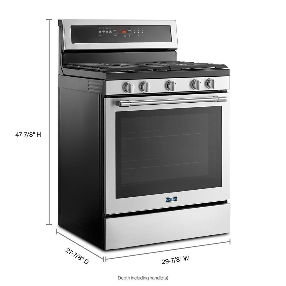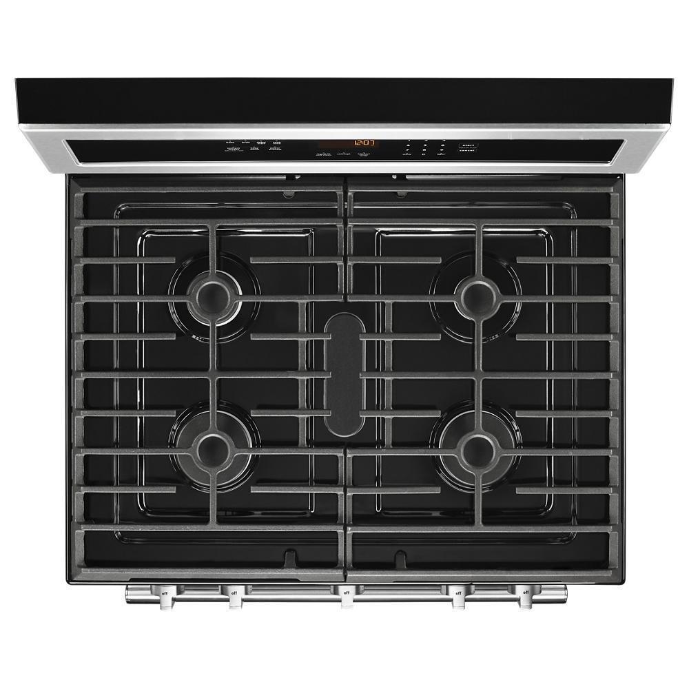 Our gas stove with included griddle plate is built for the long haul and is available in fingerprint resistant stainless steel. Power Preheat lets you start cooking sooner, while the Power™ burner brings the heat for quick searing and an even saut(eback). For faster baking and roasting, true convection with a third heating element helps keep temperatures consistent. Plus, you can count on this freestanding stove for a decade of dependability thanks to a 10-year limited parts warranty. Best of all, this 5.8 cu. ft. gas stove is designed, engineered and assembled in the U.S.A. with genuine American Pride.