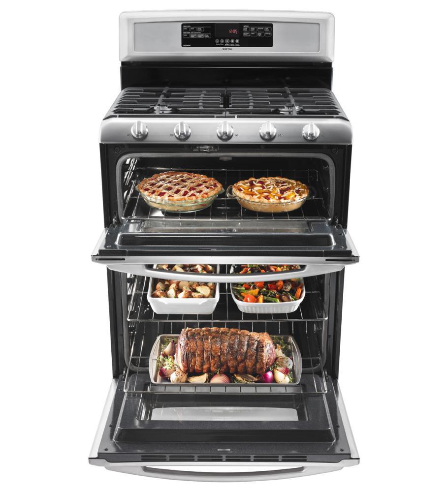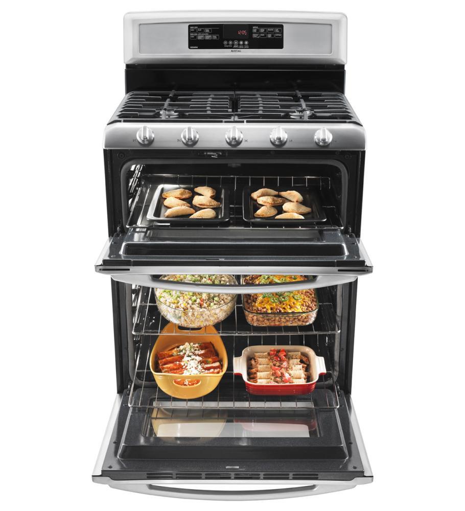 Cook just the way you want with the power of this 6.0 cu. ft. capacity double oven gas range with a 16,000-BTU Speed Heat burner and Even-Air convection. With the Speed Heat burner you'll fry, sear and boil faster than you ever thought possible, while enjoying the smooth control of gas cooking. You'll also enjoy uniform browning, even cooking and faster roasting with Even-Air convection so you can have the evenly baked goodies you want every time. This double oven features Power Preheat that preheats either oven up to 40% faster 2 so you can spend less time cooking and more time enjoying meals with your family. And this range has been Better Built with heavy-duty door hinges and backed by a 10-year limited parts warranty 1 .