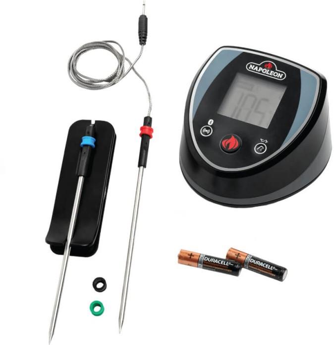 Make grilling the perfect steak or roast even easier with Napoleon's ACCU-PROBE Bluetooth Thermometer. Use the LCD display to monitor the temperature of up to four separate probes. This Bluetooth enabled device will alert your phone when the food has reached the perfect temperature. The magnetic base means that this BBQ thermometer stays where you put it. Grill steaks and roasts exactly how you want them by setting custom temperatures, ensuring everyone gets exactly what they want. The Napoleon ACCU-PROBE Bluetooth Thermometer comes with two probes and probe markers to know exactly which steak is which. Clever, multifunctional and easy to maintain, every kitchen benefits from the addition of a Napoleon barbecue accessory. Our accessories provide you with the essentials to create delicious grilled food and then some to enhance your cooking arsenal with a wide variety of creative additions to broaden your culinary horizons. Declaration of Conformity: https://www.napoleon.com/sites/default/files/2019-09/declaration-of-conformity.pdf