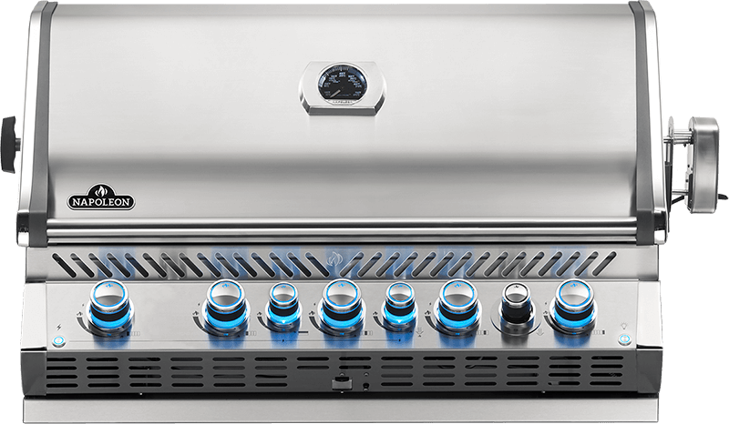 A gourmet outdoor kitchen deserves to have a big and beautiful grill. The Built-in Prestige PRO 665 Natural Gas Grill with Infrared Rear Burner features seven burners of grilling bliss. Durable stainless steel features chrome accents for luxury and durability. Grill after dark with LED Spectrum NIGHT LIGHT Control Knobs, with near limitless color possibilities. Additionally the SafetyGlow feature turns the lights red when a burner is in use. Know which burners are lit so you can get the perfect sear, or ideal indirect grilling temperature. The oven-like performance of this grill allows you to bake and roast with ease, sear over high heat, and the rear burner makes delicious rotisserie meals in no time. You'll know it's a Napoleon with the iconic WAVE cooking grids for those distinctive sear marks. The integrated smoker tube and dedicated burner can even turn this grill into a smoker, while interior lights let you grill well past dark. Perfect and professional, the PRO 665 Built-in Grill Head is the perfect grill for your outdoor kitchen.