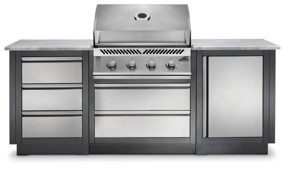 The space conscious OASIS 100 Modular Island Kit is perfect for any outdoor living space, providing the perfect amount of storage and workspace along with the full-sized, 500 Series 32-inch gas grill head. Each cabinet is built for durability, featuring stainless steel and carbon colored, powder coated, galvanneal. Fully customize this workspace by selecting your own countertop in the material and finish that matches your style. The hard work is already done and all necessary specs are provided. OASIS Modular Island Kits are easy to install. There are knockouts for electrical, gas, and water, as well as easy-to-level feet. Create the perfect outdoor kitchen experience with loads of convenient storage and a durable finish that will handle anything the elements can throw at it.