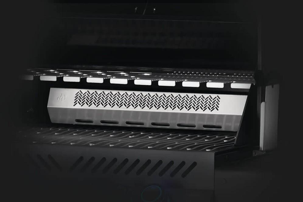 Deep, dark, matte black, the Phantom Prestige 500 Natural Gas Grill with Infrared Side and Rear Burners is the total grilling package. From the top of the lid to the locking casters, this gas barbecue is completely silky matte black. Edgy and attractive, the Phantom has the full capabilities of an outdoor kitchen. Upgraded iconic WAVE cast stainless steel cooking grids and a multifunctional grilling rack - ideal for entertaining and incredible appetizers - round out the already incredible features of a Prestige 500 Gas Grill. Four main burners, a rear burner, and infrared sear station, this grill cooks meals using a plethora of unique grilling styles. Stainless steel sear plates provide extra surface area for drippings to vaporize, keeping this luxurious grill clean, avoiding flare-ups. The matte black knobs are backlit with the SafetyGlow feature filling the night with blue light that turns red when the burners are on. The Phantom Prestige 500 Gas Grill is more than just a look. It's a lifestyle.
