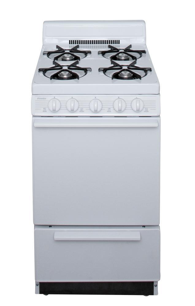Premier BAK100OP 20 in. Freestanding Battery-Generated Spark Ignition Gas Range in White