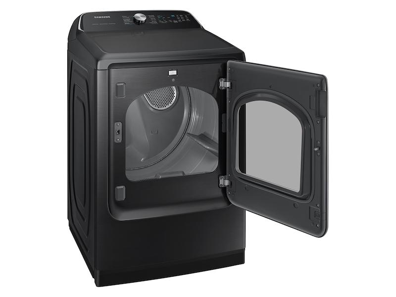 - Samsung's 7.4 cu. ft. smart front load electric dryer in brushed black has Steam Sanitize+ to sanitize clothing and reduce wrinkles and odors.
