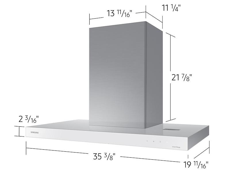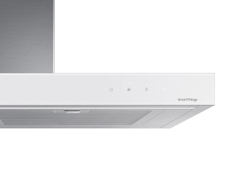 - Our stunning 36" wall mount range hood in stainless steel with Clean White panel delivers powerful ventilation, with minimal noise.