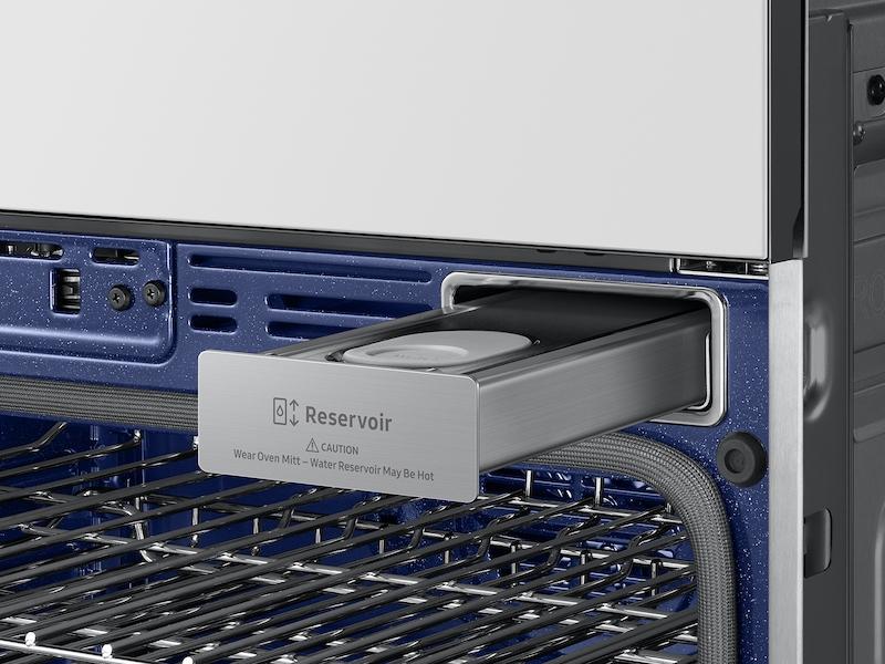- The White Glass Samsung Bespoke 30" Microwave Combination Wall Oven with Flex Duo™ features stunning glass and steel finishes that complement other Bespoke appliances in your kitchen.