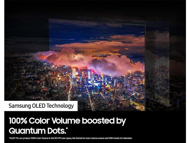 - Boosted by Quantum Dots, steal the show with the bold contrast, dramatic sound and the vibrant colors of Samsung OLED. The Infinity One Design with Slim One Connect is sleek, slim and impossibly thin. Imagination becomes reality with the infinite amount of dramatic detail made possible by self-illuminating pixels with Quantum HDR OLED+. Sit back and be mesmerized as your content is transformed to 4K with Neural Quantum Processor with 4K Upscaling.
