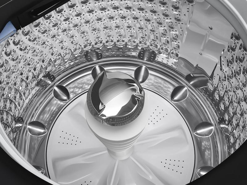 - Samsung's 5.5 cu. ft. extra large capacity smart top load washer in brushed black has ActiveWave™ agitator that reduces noise, vibration, and tangling while powerfully cleaning.