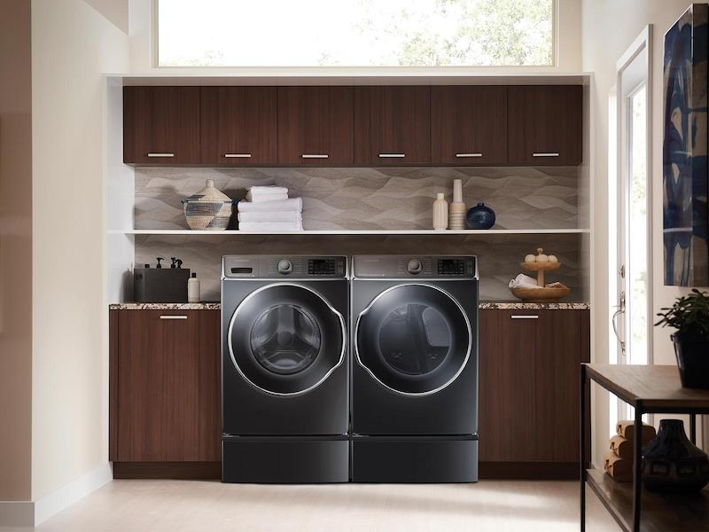 This 30" onyx pedestal will allow you to lift your Samsung Front-Load washer or dryer to a more convenient height and will allow more storage with the easily accessible storage drawer.