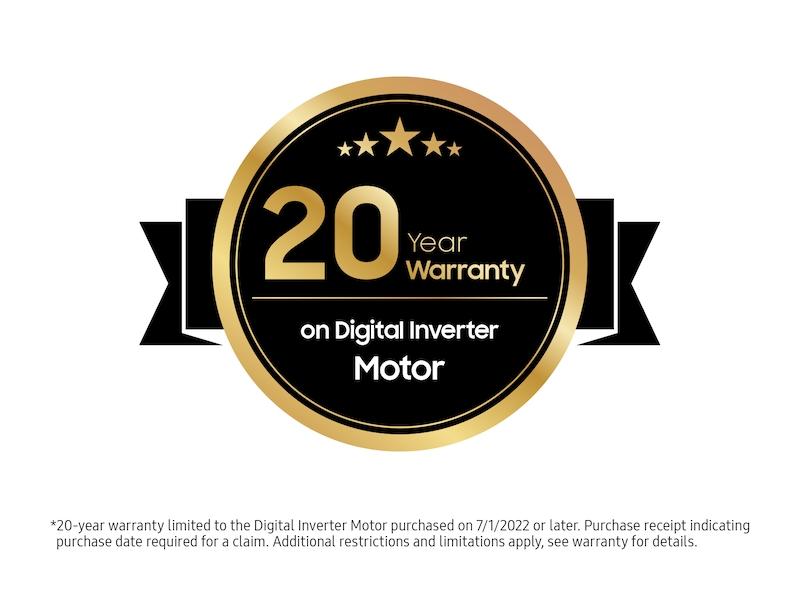 Samsung washing machines are covered by a 20-Year Warranty on the Digital Inverter Motor.