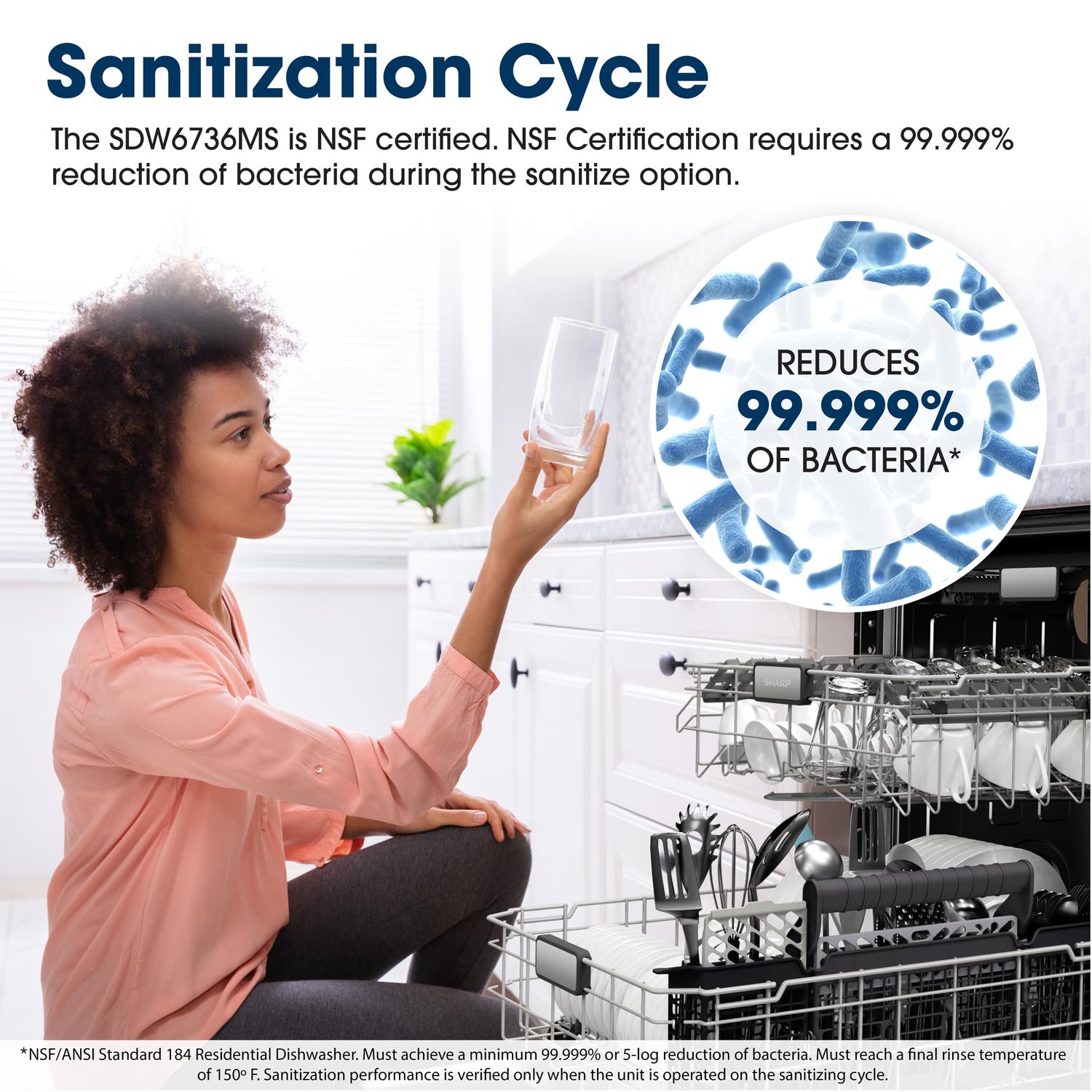 The Sharp® SDW6736MS balances thoughtful features and options to improve your dishwashing experience. With six washing cycles, seven options, outstanding washing power, and an adjustable third rack, the SDW6736MS is ready to clean up after big celebrations and cozy staycations!