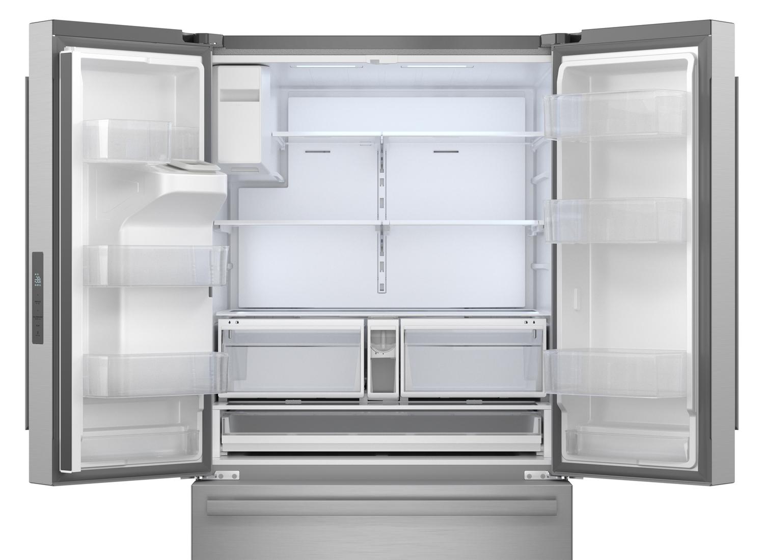 The SJF2955KS, French-Three-Door Refrigerator, with a spacious 28.9 cu. ft. capacity, pairs beautifully with other stainless steel appliances, while resisting fingerprints and smudges. Inside the refrigerator, the five bright white LED lights give you a clear view, plus there is an additional LED light in the Freezer Drawer.