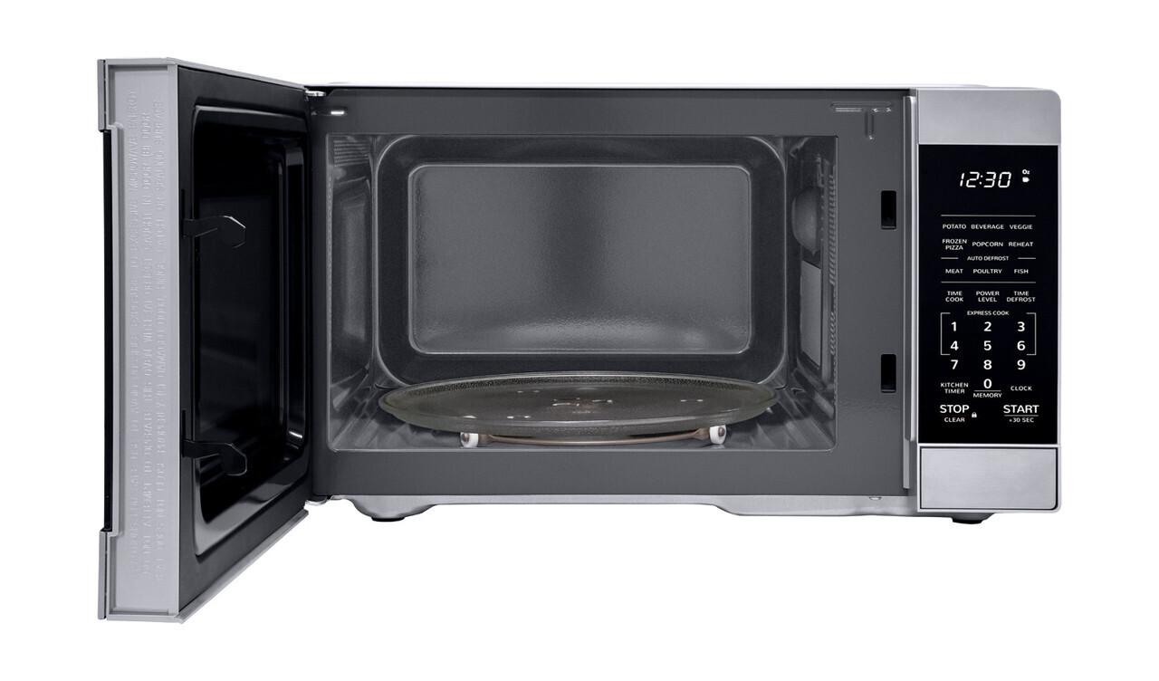 Easy-to-clean Stainless Steel finish with stylish gray interior, and LED light complement your style. The 10.6 in., dishwasher-safe glass plate of the Carousel® turntable system makes cleanup easy. The White LED display is bright and easy-to-read. Now that is Simply Better Living.