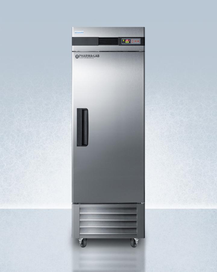 Accucold's Pharma-Lab Performance Series features reach-in refrigerators and matching freezers designed and purpose-built to meet the demanding needs for pharmacy, medication, vaccine, laboratory, and life science applications. The AFS23ML is a 23 cu.ft. all-freezer with an adjustable control range from -30 to -15 C. The microprocessor temperature controller features a large digital LED display viewable in Celsius or Fahrenheit, making it easy for staff to manage and monitor the temperature. The unit is equipped with an air sensor for rapid control response and a product sensor for a more accurate reading of the interior, including a display of the min/max temperature in 15 minute increments The audible and visual temperature alarm sounds if the unit rises or falls above a user-set range. Additional alarms include a power failure alert, door open alarm, and a condenser cleaning reminder. Inside, the AFS23ML utilizes adjustable cycle defrost operation to avoid temperature spikes, with a top-mounted forced air cooling system to ensure rapid temperature recovery. Four vinyl-coated wire shelves on cantilevered clips allow you to accommodate virtually any sized item. The LED lighting displays automatically when the door is open, providing a full and energy efficient display. The AFS23ML features a durable stainless steel cabinet and interior, with a sealed back for easier cleanup. We include a set of casters (2 locking) for optional installation. A factory-installed lock offers added security, with two keys included for your facility. Magnetic door gaskets ensure a strong seal. The door is self-closing to help protect contents, but will remain open at 90 for easier loading. Designed with hydrocarbon refrigerant, the AFS23ML provides an energy efficient solution to large capacity storage. This unit is Pyxis, Omnicell, and AcuDose RX compatible and meets NSF-7 commercial standards. For a matching refrigerator, see the ARS23ML. NOTE: Accucold freezers are purpose-built to the support meeting the current CDC (Centers for Disease Control) guidelines for the storage of vaccines. As referenced in the current Vaccine Storage and Handling Toolkit, these units incorporate several key features for stable operation. For additional temperature assurance, the CDC recommends a calibrated digital data logger (DDL), which can be added with the factory-installed option DL2B or addition of the DL2BKit accessory. Select Accucold products have been tested and certified to the new NSF 456 standard, and are now available for purchase. For additional information, contact our products specialists.