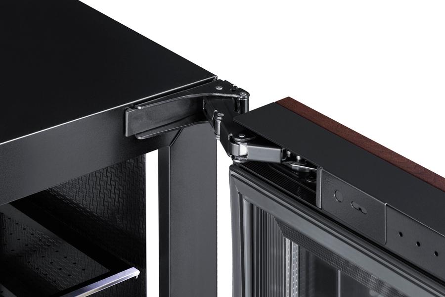 Summit's AL54 series features built-in undercounter all-refrigerators designed for installation under lower ADA compliant counters, with advanced features for user convenience. Sized with a convenient 24" footprint, the AL54PNR is just 32" high to fit under lower counters complying with ADA guidelines for accessibility. The fully finished black cabinet allows freestanding use, while the front-breathing system also allows this unit to be built-in with minimum clearance. The reversible stainless steel door features a European-style fully articulating hinge for zero clearance opening. We include a 2-piece bracket kit that allows easy installation of overlay panels to create a custom look that can seamlessly blend into your existing cabinetry design (panel size: 28.38" H x 23.4" W; maximum weight: 10 lbs.). This unit has a flush back for easy cleaning and a right angle plug for a better fit. A factory-installed lock is located in the kickplate. Inside, the AL54PNR utilizes frost-free operation with fan-forced cooling to ensure low maintenance and even temperature distribution. Recessed LED lighting offers an attractive yet efficient look. The digital thermostat makes it easy to manage the interior temperature. This unit includes adjustable glass shelves for flexible, spill-proof storage and two large door racks ideal for keeping condiments and bottles in easy reach. The floor is specially slotted to hold bottles in place. Additional features include an open door alarm, high temperature alarm, and Sabbath mode setting that lets you disable some of the electrical elements during periods of observance. With its deluxe style and user-friendly features, this unit is the perfect choice for ADA compliant spaces. Additional styles are available, as well a matching frost-free freezer (model ALFZ53IF). Browse the full Summit line to explore your endless options.