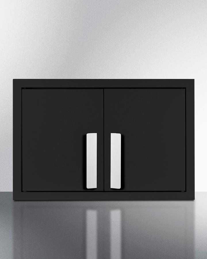 Summit's line of wall cabinets brings added storage space to your kitchen in a convenient easy-to-install design. Sized at 18" wide and 12" deep, the CAB18SHORTBLK is perfect for smaller kitchen spaces. Constructed from powder-coated metal, it comes in a jet black finish with angled blade-style handles in brushed stainless steel for a modern look. The french door design makes it easy to store and remove contents as needed. Inside, two removable shelves allow you to accommodate a variety of sizes. The cabinet ships fully assembled with a mounting bracket and all the equipment needed for proper installation. With its slim-fitting design and durable construction, the CAB18SHORTBLK is the perfect addition to any existing kitchen space, and can easily be paired with any Summit all-in-one kitchenette. For this unit in a white finish, see the CAB1812WHITE, or visit www.summitappliance.com to explore our entire line of kitchenette wall cabinets.