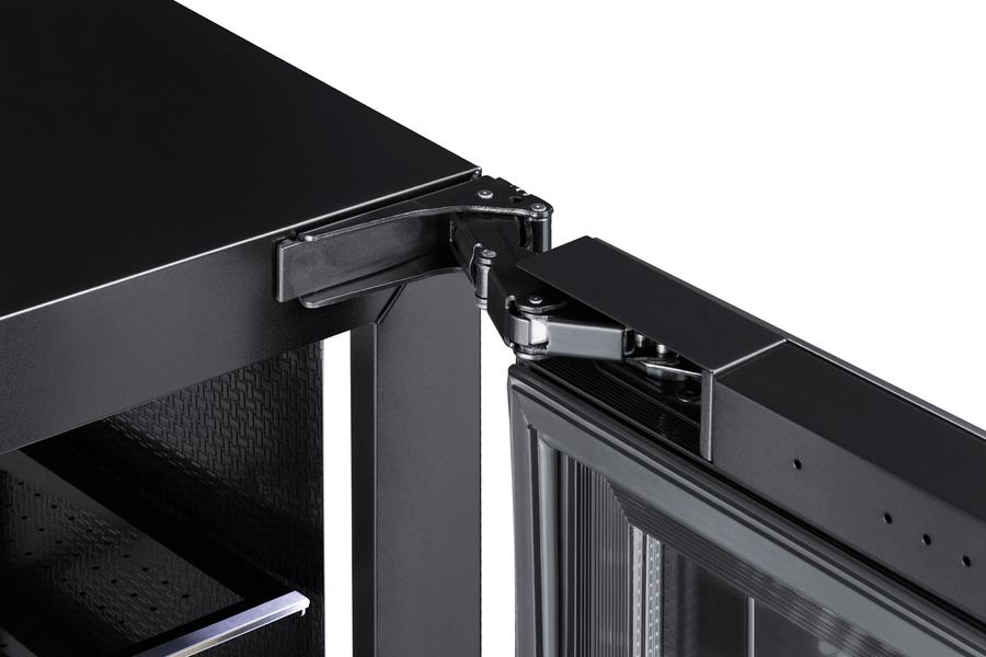 Summit's collection of premium built-in undercounter beverage centers brings full functionality, convenience, and elevated style to kitchens and home bars. Summit's CL24BV1 is a 24" wide beverage center designed for residential or commercial use with 4.73 cu. ft. of storage space. The front-breathing system allows built-in installation, while the fully finished black cabinet also allows freestanding use. Seamless, stylish stainless steel trim blends smoothly into the reversible double pane tempered glass door for an elevated look, with a professional stainless steel handle included. This unit has a sealed rear and right-angle cord for a better fit. The fully articulating European-style hinge design ensures a smoother opening. A lock is located in the kickplate for added convenience and security. Inside, model CL24BV1 features a stainless steel rear wall for improved durability and sanitation. Fan-forced cooling ensures even temperature distribution and fast temperature recovery. Tri-colored LED lighting featuring amber, blue, and white options offers elegant display conditions with dimmable levels that let you create the perfect presentation. Three glass shelves ensure flexible storage to accommodate any size bottle. The interior includes an angled digital thermostat for increased accessibility, with a readout viewable in Celsius or Fahrenheit. The unit's floor features a dipped flat design to allow you to store certain beverages upright. Additional features include a user-reversible door, a sabbath mode for observance periods, and a temperature memory function to restore the set temperature during power loss. A built-in alarm audibly warns if the door is left ajar or if the unit rises or falls out of the recommended temperature. Note: This unit comes with an anti-tip bracket that should be installed to help prevent tipping of the unit for added safety. Uniquely styled and fully featured, the CL24BV1 brings true convenience to kitchen or bar spaces. For this unit in a 15" width, see model CL156BV1. Create a matching set by pairing this with our 24" wide wine cellar, model CL244WC2, or our 15" wide wine cellar, model CL155WC1. Explore all of Summit's beverage centers and wine cellars at summitappliance.com