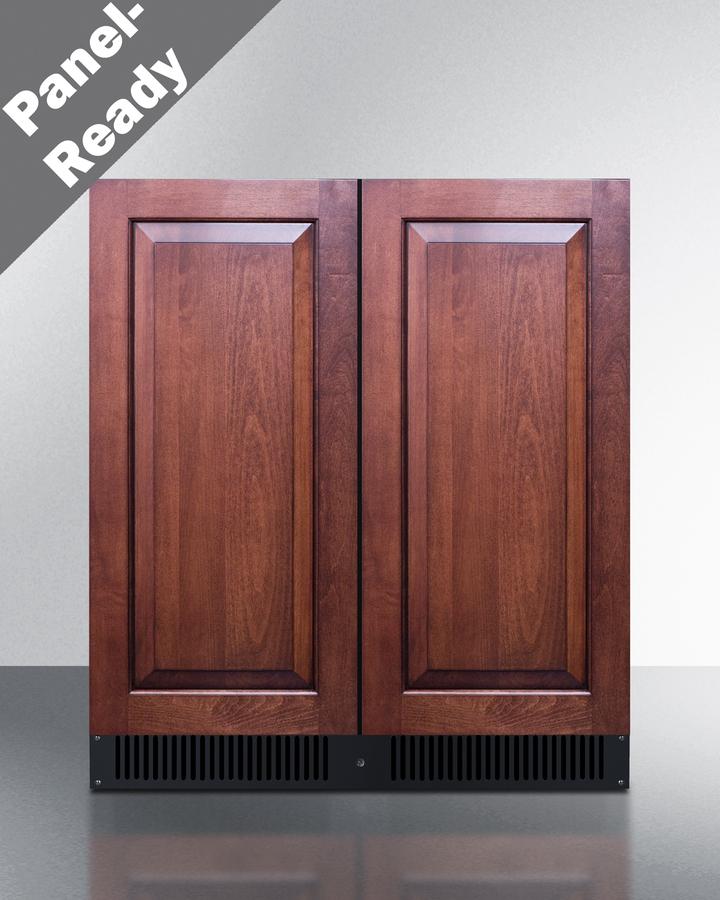 Summit manufactures unique refrigeration solutions to combine full functionality and custom style under the counter. Sized at 30" wide, the FFRF3070BPNR is an all-in-one side-by-side refrigerator-freezer. The front-breathing design allows built-in installation under counters, while the fully finished black cabinet also enables freestanding use. French doors allow you to separately store refrigerated and frozen foods. This unit comes in a jet black finish and includes two sets of brackets that allow easy installation of custom panels over the doors (recommended panel size: 30" H x 14 5/8" W at 3/4" thickness). The European style fully articulating hinging ensures seamless integration into your space. This unit includes a lock in the kickplate to secure both sections. A sealed back and right angle plug offer added space savings. Inside, the FFRF3070BPNR features a frost-free freezer compartment on the left and a frost-free refrigerator compartment on the right. The refrigerator includes a digital thermostat allowing users to manage the temperature in each compartment, with a readout in Celsius or Fahrenheit for added convenience. Adjustable glass shelves offer cleaner spill-proof storage for fresh food items, while two removable door shelves provide additional storage space as needed. The freezer compartment includes adjustable wire shelves to ensure proper cold air circulation. Both sides feature LED lighting to provide an attractive, energy efficient presentation. The slotted floor design is ideal for keeping bottles safely in place. Additional features include an open door alarm, high temperature alarm, and Sabbath mode setting that allows you to disable certain functions during religious observance. With its innovative all-in-one design, user-friendly features, and full frost-free operation, the FFRF3070BPNR is a great choice for smaller kitchens looking to maximize storage space under the counter. Additional choices are available in white, black, and stainless steel. Browse the full Summit selection to discover the perfect fit for your space.