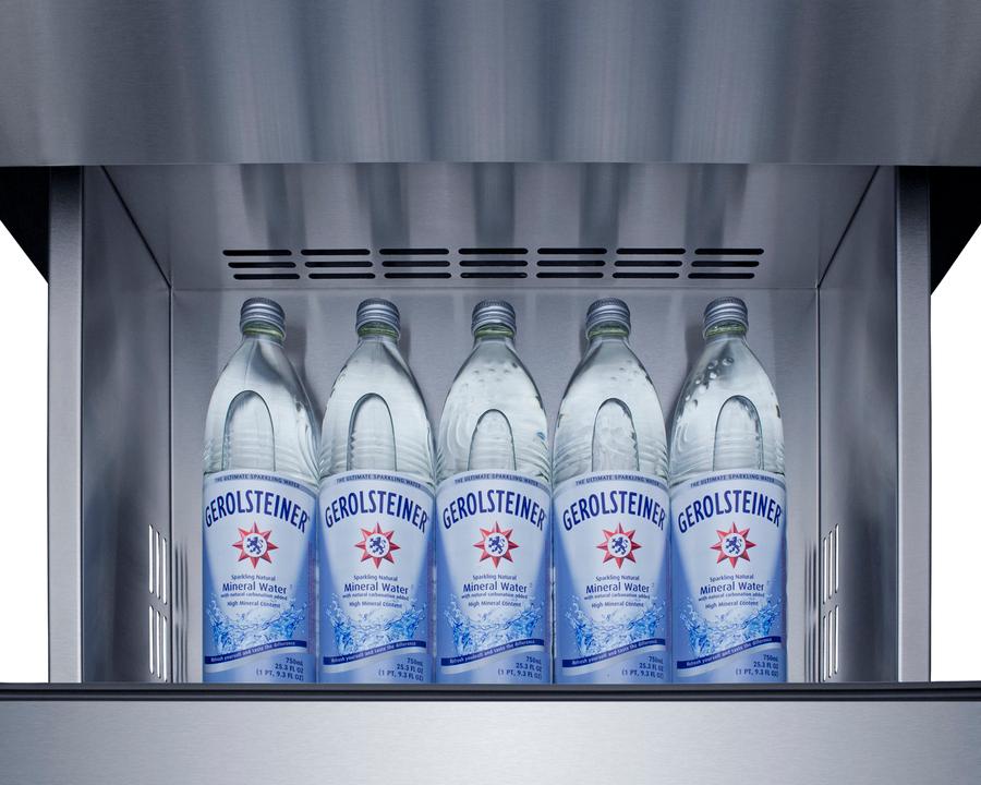 Summit brings luxury and convenience under the counter with a fully featured 3-drawer all-refrigerator. Model SP6DS3D is sized with an easy-fitting 24" footprint. The front-breathing system allows built-in installation, while the fully finished cabinet enables freestanding use. The three drawers are constructed from stainless steel inside and out for lasting durability and easy-to-clean convenience. Professional handles complete the look. This unit has a sealed back and right angle plug for added space savings. Inside, the SP6DS3D utilizes frost-free cooling for minimum user maintenance. With three separate drawers, this refrigerator allows you to better organize your items. Keep meat separate from dairy, or animal products separate from plant-based. The durable steel interiors are perfect for holding cans or horizontally placed bottles as well. LED lighting in the top drawer offers an efficient and attractive view. The intuitive digital control panel is easy to read and even easier to use, featuring an indicator light to announce which function is activated with an external readout in Celsius or Fahrenheit. It is externally located on the top drawer for easy access. Additional features ensure the unit is running at its best. These include a high temperature alarm and an open drawer alarm. A temperature memory function helps to recover all settings in the event of power loss. This model also includes a Sabbath Mode Setting that disables certain electrical features for up to 96 hours during periods of religious observance. The SP6DS3D can be used in home or commercial settings. This unit is ETL-S listed to NSF-7 standards and meets UL Commercial Standard 471. For an outdoor version, see model SP6DS3DOS. Additional 2-drawer refrigerators are available in 15", 18", 24", 27", 30", and 36" widths. Browse the full Summit lineup to explore the industry's most extensive collection of built-in drawer refrigeration.