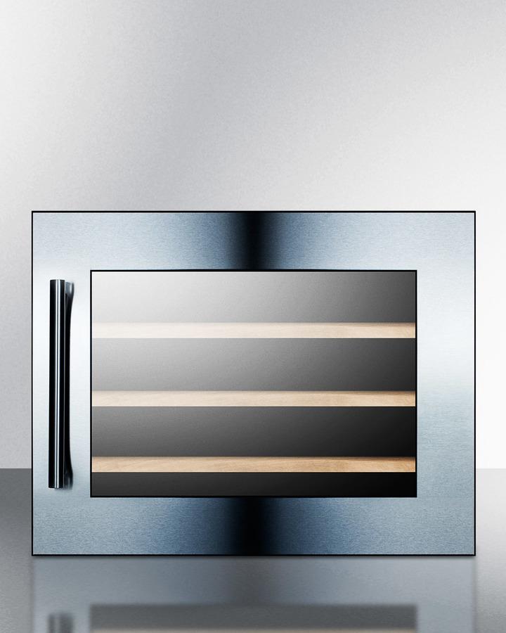SUMMIT introduces fully integrated wine cellars for optimum storage and professional elegance.The VC28S is designed to store up to 28 bottles under the ideal conditions. The double pane tempered glass door ensures your collection is safely protected from UV light while offering a luxurious look with a seamless stainless steel frame. A professional handle adds a modern touch. The door swing is user reversible, offering more flexibility when positioning the unit. Inside, the VC28S includes a digital thermostat for easy temperature management. Three wooden shelves hold bottles in classic style, with a floor specially slotted to store additional wine. The recessed LED lighting provides an elegant view of the interior, with an optional setting of display or functional mode. Additional features include an open door alarm, high/low temperature alarm and optional Sabbath Mode setting. The VC28S is auto defrost, with fan-forced cooling that ensures the interior temperature is evenly distributed and a condensation collection system that helps to maintain the correct level of humidity inside. With a stunning look and quality design, the VC28S adds a great touch to any room. For our fully integrated dual zone wine cellar, see the VC60D. This unit is designed for fully integrated installation (cutout dimensions: 16 7/8" H x 21 1/2" W x 22 1/8" D; see user manual for additional information about providing proper ventilation and spacing for this unit).