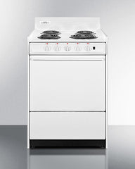 Summit Appliance offers a wide selection of American-made household ranges built for long-lasting durability in space-challenged kitchens. The 23.2 amp design is ideal for kitchens with power limitations. The WEM610 is an apartment-sized 220V electric range sized at just 24" wide, with a generous 2.92 cu.ft oven interior that can accommodate large trays. Two adjustable oven racks are included. The waist-high broiler is located inside the oven, allowing you to switch functions without moving contents to a separate compartment on the floor. The lower drop-down storage compartment is ideal for keeping pots and pans out of the way in small kitchens. Designed to meet the most current UL safety standards, this unit features one 8" 950W and three 6" 650W coil elements. These operate at lower wattage than standard electric ranges, allowing for a slow but steady heating process that will not cycle off. Upfront push-to-turn knobs offer additional protection, ensuring users won't reach over hot burners to adjust the heat. This unit complies with ADA guidelines. The WEM610 comes in a classic white finish to suit any kitchen setting. It has a recessed oven door and is conveniently sized at just 24" deep for a better fit in galley in L-shaped kitchens, where every inch counts. Porcelain and steel construction help the unit hold up to years of daily use. We include an anti-tip bracket for added safety. This unit does not include a line cord (a standard 25 or 30 amp 3 or 4-wire range cord can be installed by your electrician). With its classic style and quality construction, Summit's made in the USA cooking line offers reliable cooking for smaller homes. Additional choices are available in 20", 30", and 36" wide fits.