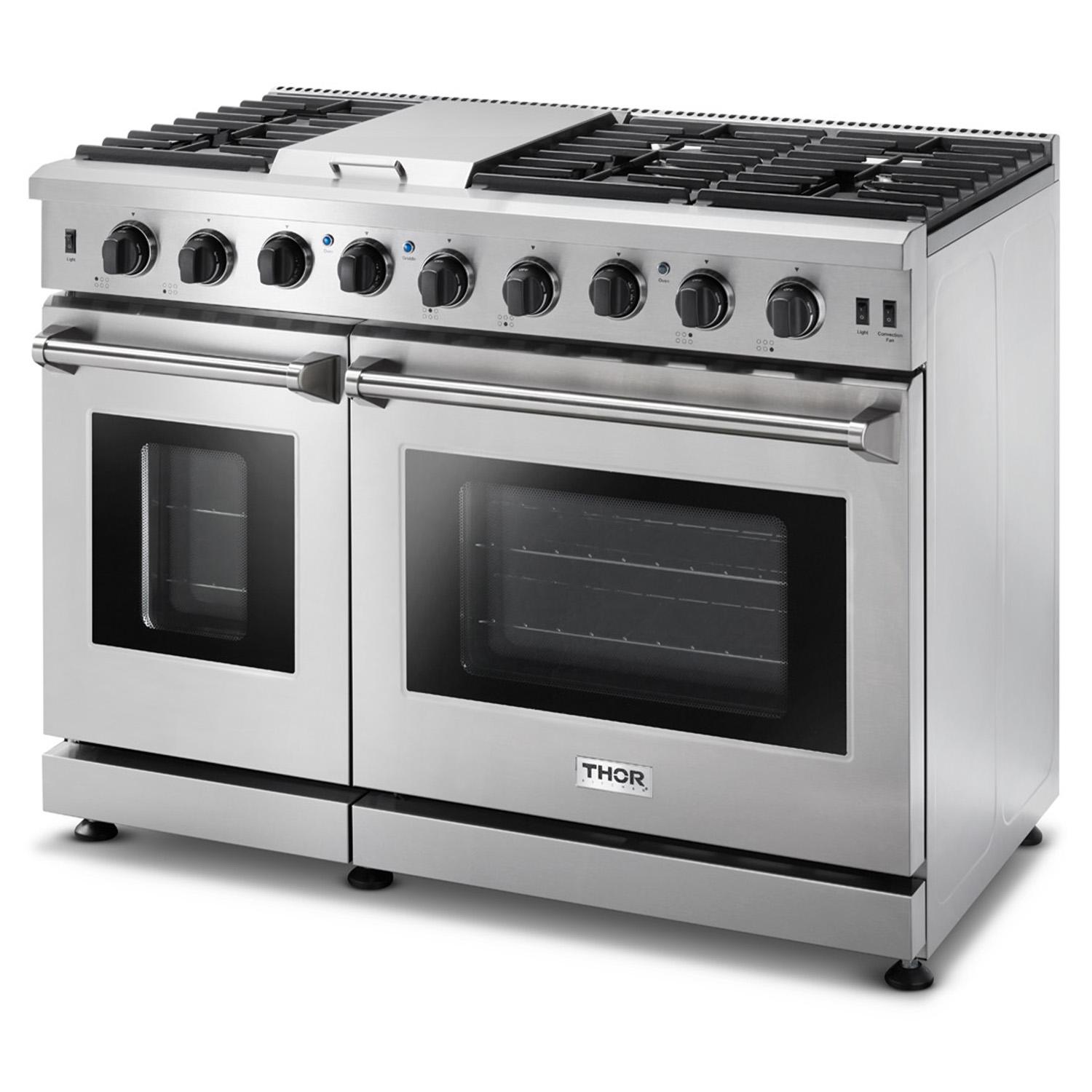 THOR Kitchen offers the power and performance of a premium professional appliance at a practical price. The THOR Kitchen 48 Inch Gas Range is a stainless steel machine that is designed with professional features and functionality. With powerful burners, continuous grates and a commercial convection fan, this range takes everything from prime rib to snickerdoodles to the next level. Oh, and did we mention the 15,000 BTU griddle? #cooklikeagod