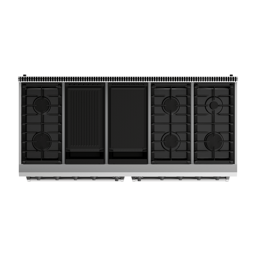 THOR Kitchen offers the power and performance of a premium professional appliance at a practical price. The two 4.8 cu. ft. ovens allow you to prepare multiple dishes simultaneously, perfect for hosting dinner parties or cooking large family meals. Effortlessly maintain a spotless kitchen with the black porcelain spill tray, which catches any messes and simplifies cleanup. The versatile 8-burner cooktop, ranging from a 3500 BTU burner to a powerful 18,000 BTU burner, gives you the flexibility to master any culinary challenge. Heavy-duty continuous cast-iron cooking grates provide stability for any size cookware, ensuring durability and reliability. The convection fan ensures fast and even cooking, while the large oven windows and bright halogen lights let you easily monitor your food without opening the door. With dual-function oven controls and high-temperature frying capabilities, this range is designed to bring out the professional chef in every home cook.