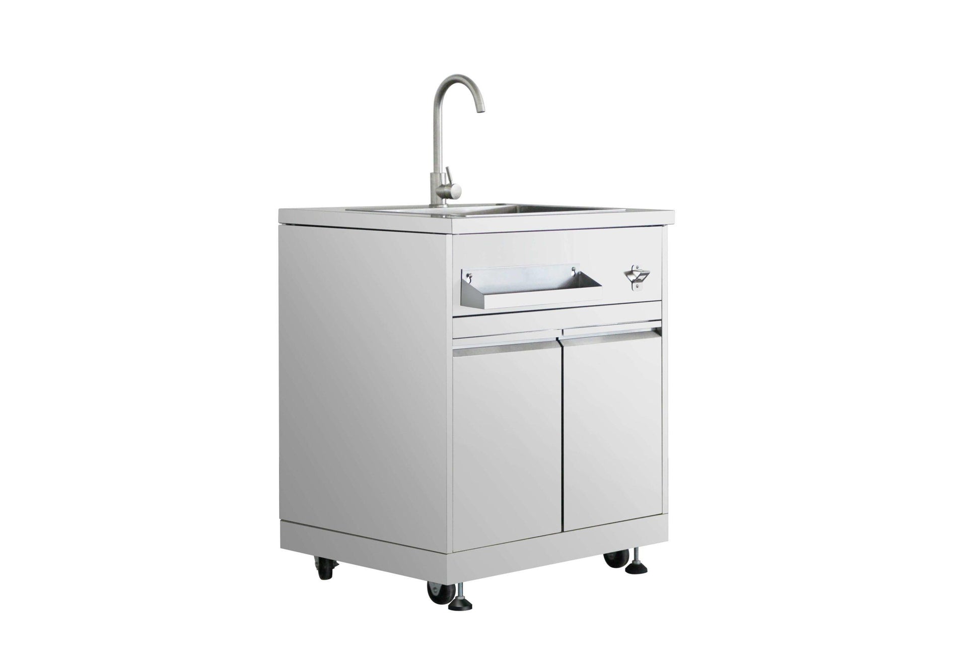 THOR Kitchen offers the power and performance of a premium professional appliance at a practical price. The THOR Kitchen 32 Inch Bar Center is a stainless steel sink cabinet that elevates your outdoor kitchen game as a place to rinse your fresh ingredients before cooking, thaw prepared proteins, and wash your grilling utensils after barbequing a delicious meal. It features extra cabinet space, a built-in spice rack, and a convenient bottle opener so you can enjoy a brew while you que. #cooklikeagod