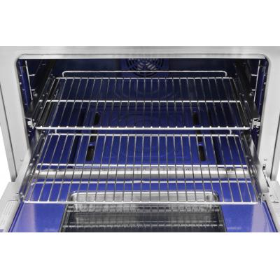 The brilliant blue LED control panel lights and blue porcelain interior add a bold, stylish touch to your professional range.