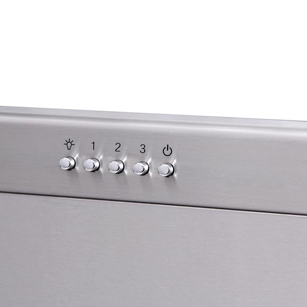 Easy-to-operate push button controls for power, fan and light.