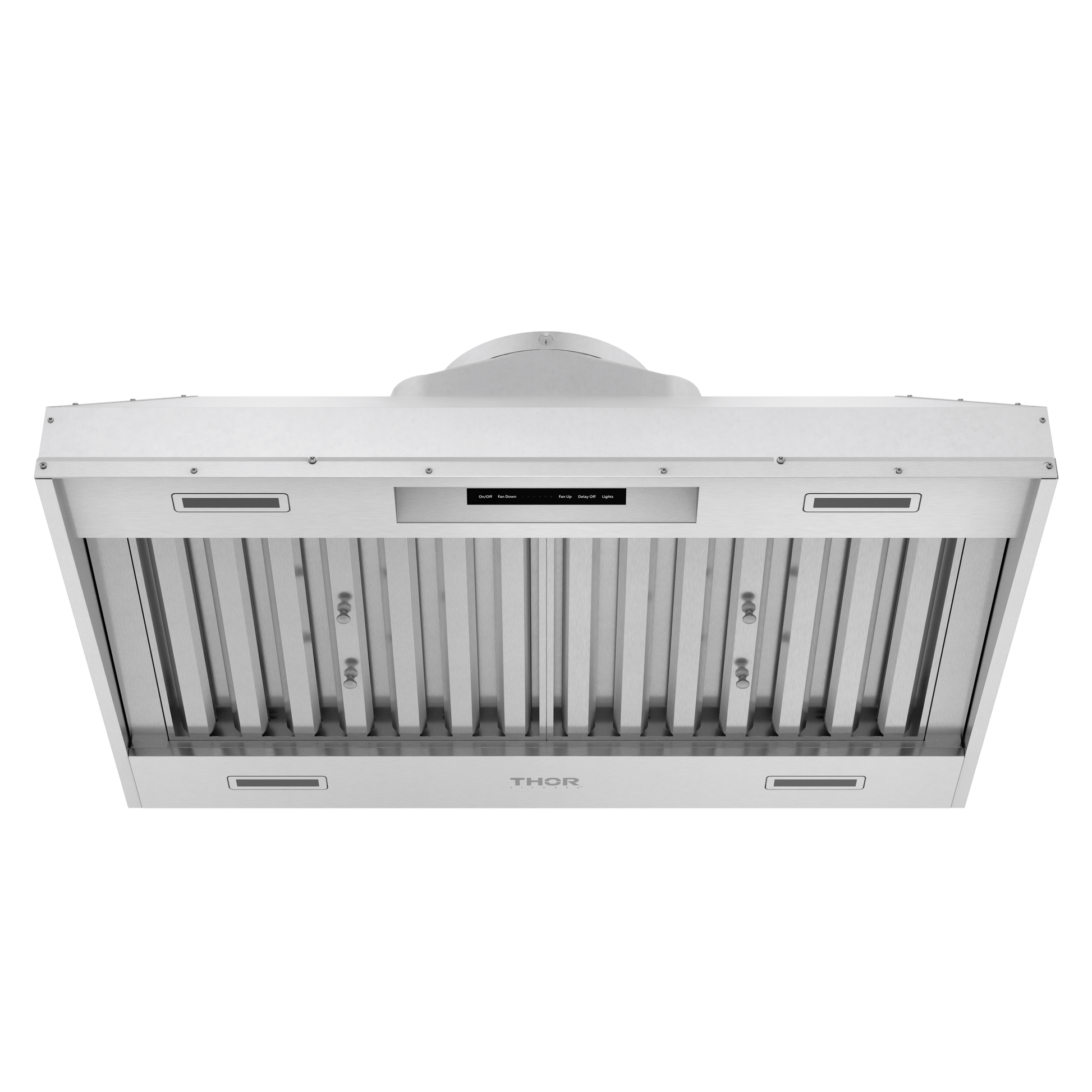 THOR Kitchen offers the power and performance of a premium professional appliance at a practical price. Introducing the 36" Liner Hood, designed to effortlessly handle all your kitchen ventilation needs with its powerful 1200 CFM motor. Perfectly customizable to meet any custom cabinet design, this liner hood integrates seamlessly into your kitchen decor. Wave goodbye to smoke, odors, and steam with intuitive Gesture Controls that let you adjust the speed with just a wave of your hand. The intelligent Heat Sensor activates the hood at 131(degree)F and shuts it off at 104(degree)F, while the Delay-Off feature lets you set a power-off delay for up to 12 minutes. Keep your kitchen grease-free with deep-groove Baffle Filters, which are also dishwasher-safe for easy cleaning. Bright LED Lights illuminate your cooking space, and the Clean Filter Reminder ensures your filters are always maintained. With 6 adjustable fan speeds and a responsive Touch Control pnael, you have complete control over your kitchen environment.