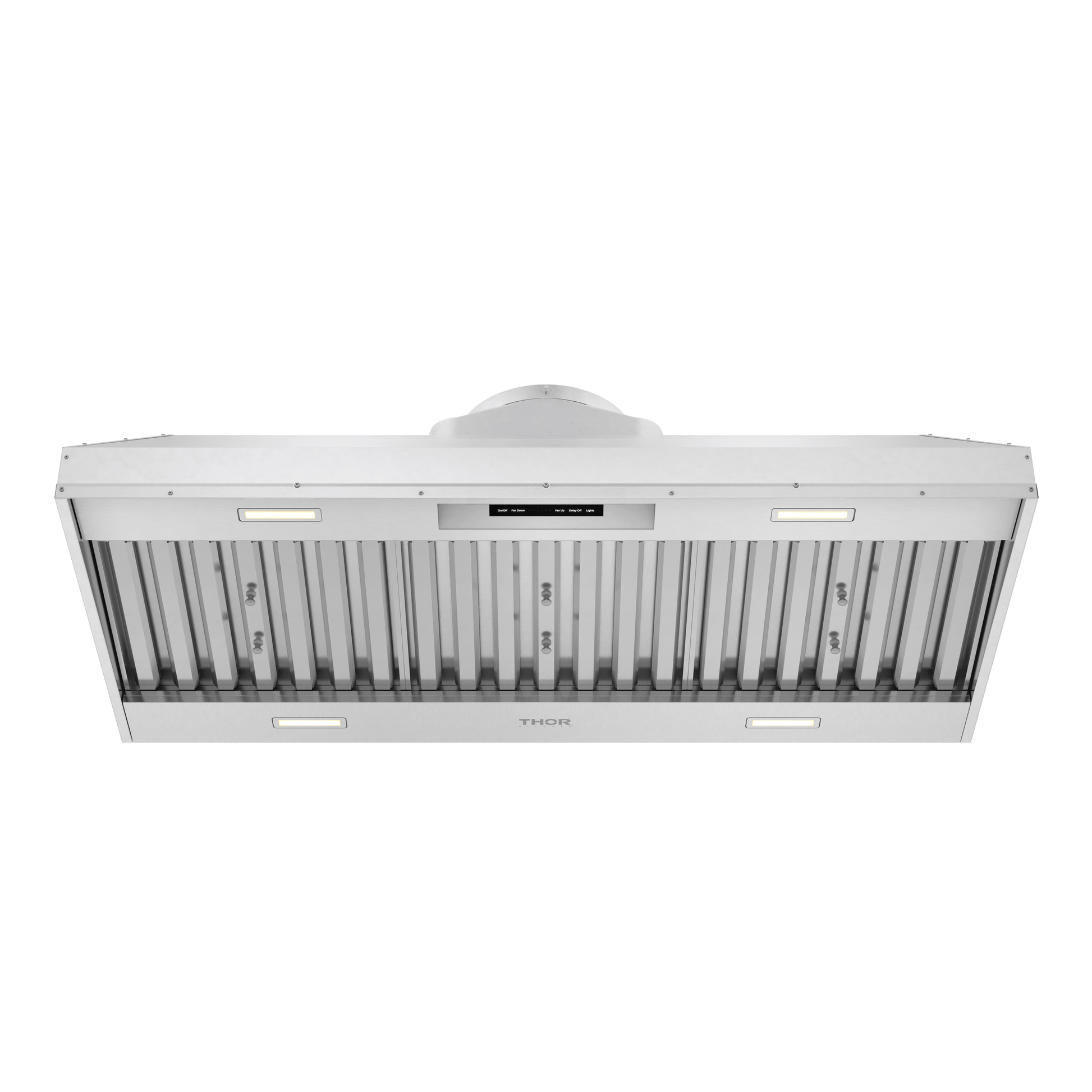 THOR Kitchen offers the power and performance of a premium professional appliance at a practical price. Introducing the 48" Liner Hood, designed to effortlessly handle all your kitchen ventilation needs with its powerful 1200 CFM motor. Perfectly customizable to meet any custom cabinet design, this liner hood integrates seamlessly into your kitchen decor. Wave goodbye to smoke, odors, and steam with intuitive Gesture Controls that let you adjust the speed with just a wave of your hand. The intelligent Heat Sensor activates the hood at 131(degree)F and shuts it off at 104(degree)F, while the Delay-Off feature lets you set a power-off delay for up to 12 minutes. Keep your kitchen grease-free with deep-groove Baffle Filters, which are also dishwasher-safe for easy cleaning. Bright LED Lights illuminate your cooking space, and the Clean Filter Reminder ensures your filters are always maintained. With 6 adjustable fan speeds and a responsive Touch Control panel, you have complete control over your kitchen environment.