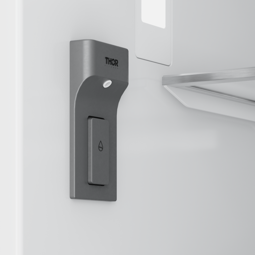 THOR Kitchen offers the power and performance of a premium professional appliance at a practical price. Thor's XRF24CRF-SS Built-in Refrigerator Column delivers advanced performance and sleek design for a superior kitchen experience. Featuring Total No Frost technology, it eliminates ice and moisture build-up to keep your food fresh. The automatic ice maker produces up to 4 lbs. of ice per day, while fast freezing ensures your ingredients maintain their optimal taste and quality. Bright interior LED lighting provides clear visibility, and soft-close drawers add a touch of luxury. Operating at an ultra-quiet 43 dB(A), it ensures a peaceful kitchen environment. With a wide temperature range from +5(degree)F (-15(degree)C) to -11(degree)F (-24(degree)C) and versatile modes such as Sabbath, Holiday, and ECO."
