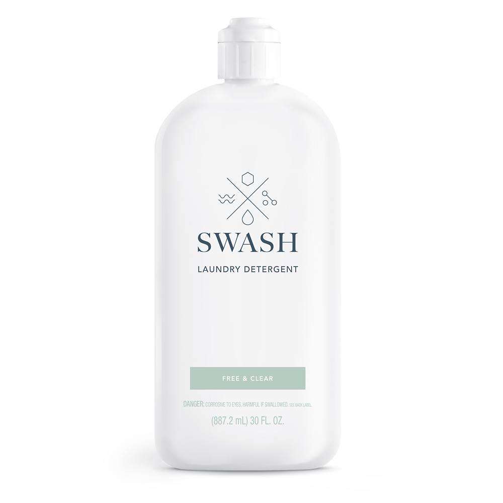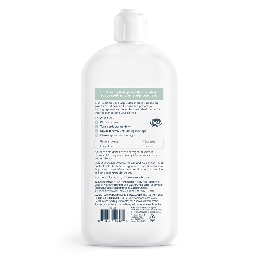 Here it is. Meet Swash® Smells Like Nothing Liquid Laundry Detergent from Whirlpool Corporation. Swash® Laundry Detergent is designed with zero phosphates and 8x the concentration, so you can keep your things clean and use only what you need-no more, no less. Compatible with HE and non-HE washing machines, you only need one squeeze of Swash® Laundry Detergent for regular loads and two squeezes for large loads. No guess, no mess! The Smells Like Nothing fragrance-free scent is designed for sensitive skin, knocking every piece of your laundry absolutely scentless