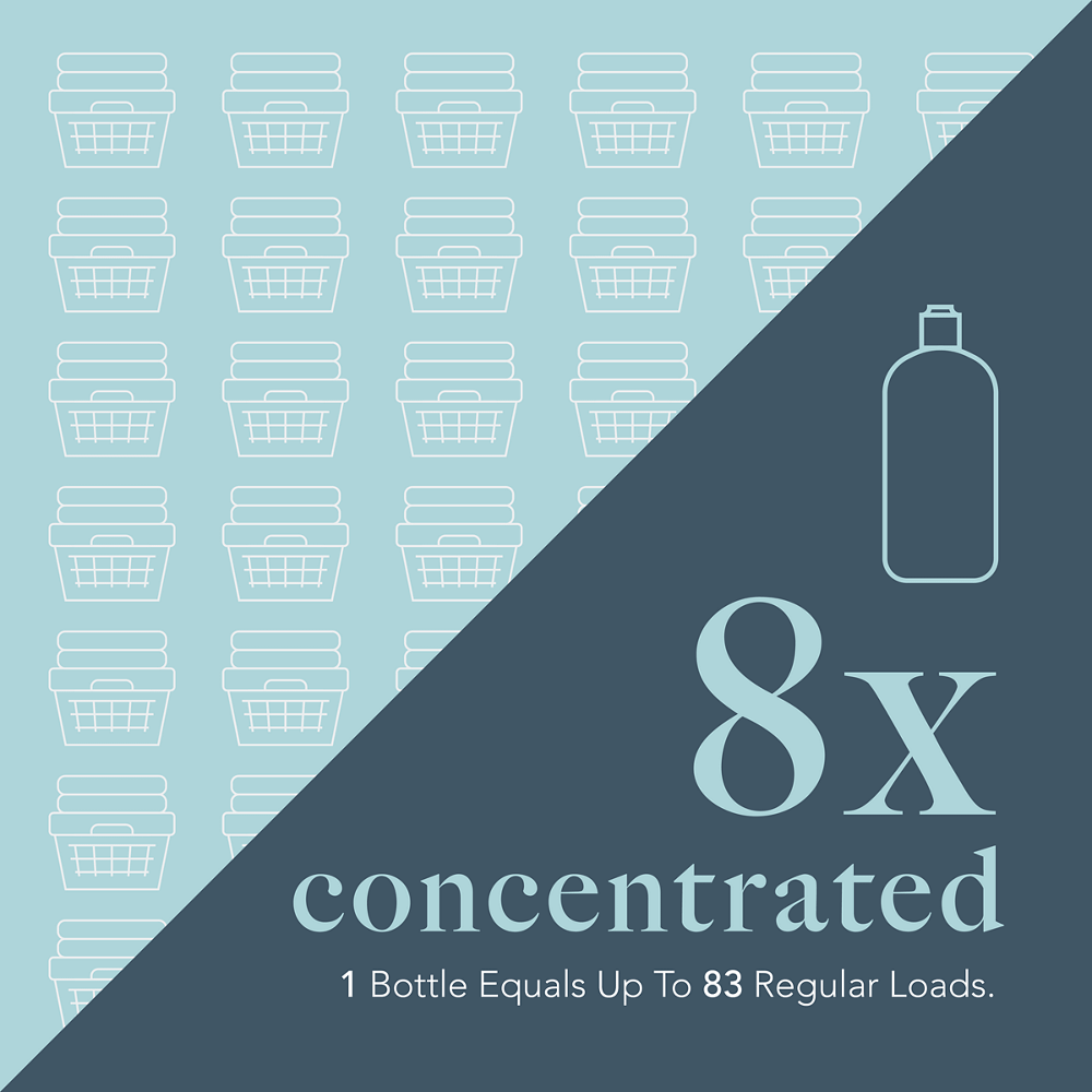 - Get the results you want while using less detergent. 1 bottle = 83 loads - with our unique 8x concentrated formula, less is more.