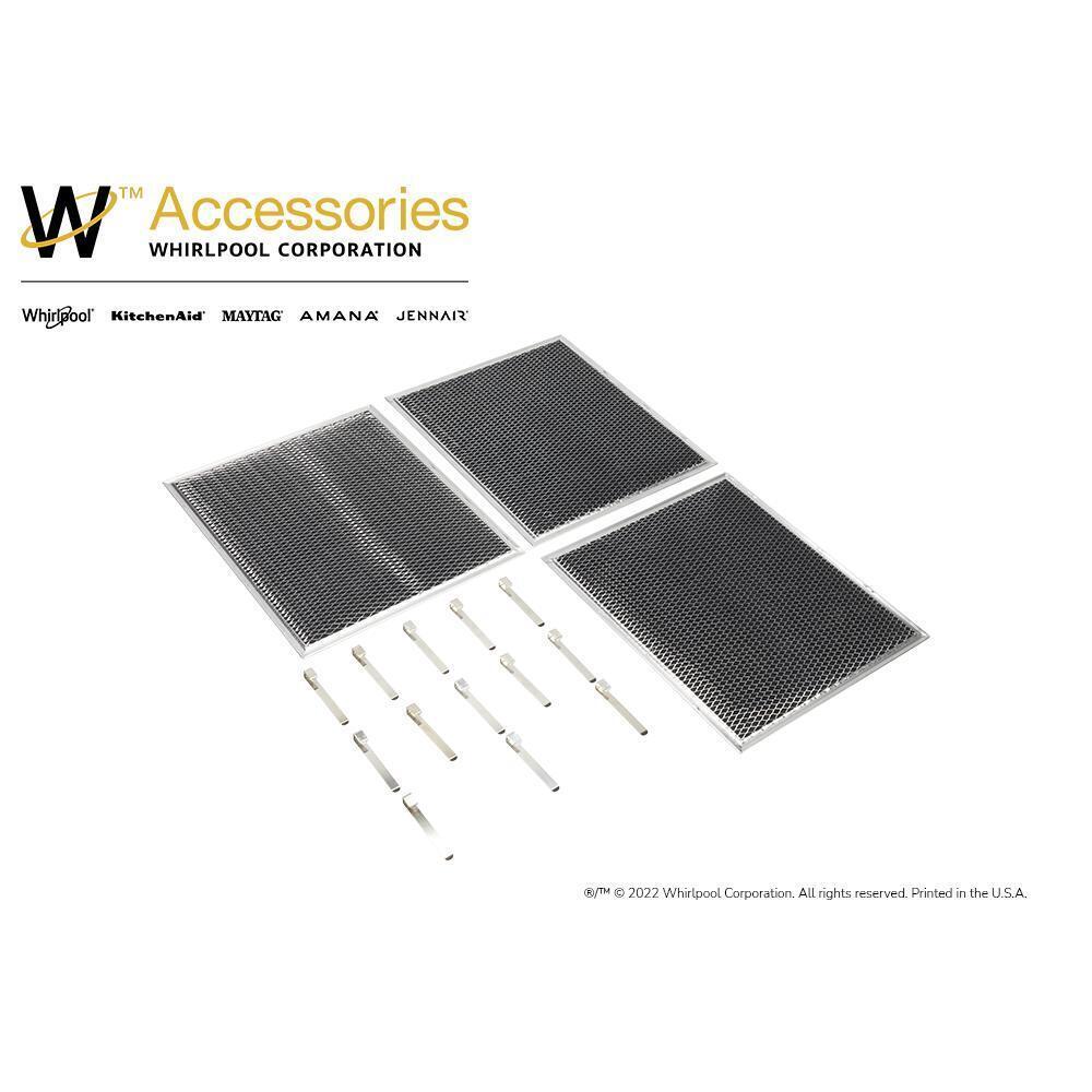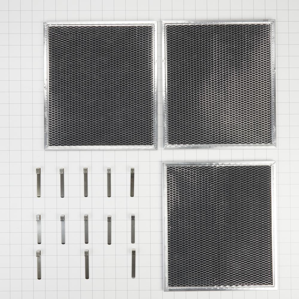 Model W10412939 Range Hood Charcoal Filters trap grease from the exhaust air of your oven to help prevent it from entering the blower and vent, potentially causing build-up and damage. Kit includes (3) charcoal filters measuring 18-7/8-IN L x 13-IN W and mounting clips. This charcoal filter kit is an accessory that can be used across several brands; check to see if your model number is compatible. Installing this accessory will require basic hand tools, but no disassembly of the range hood or repair experience. You must shut off the house circuit breaker for the appliance before installing this. Helpful Tip: Replace your range hood s filter every 6 months to maximize performance and efficiency.