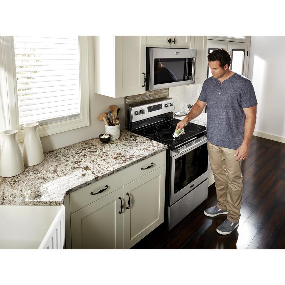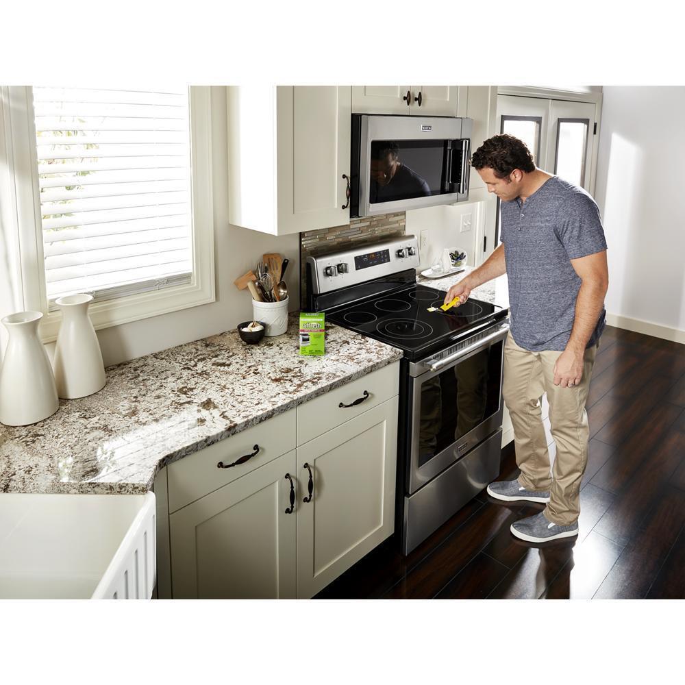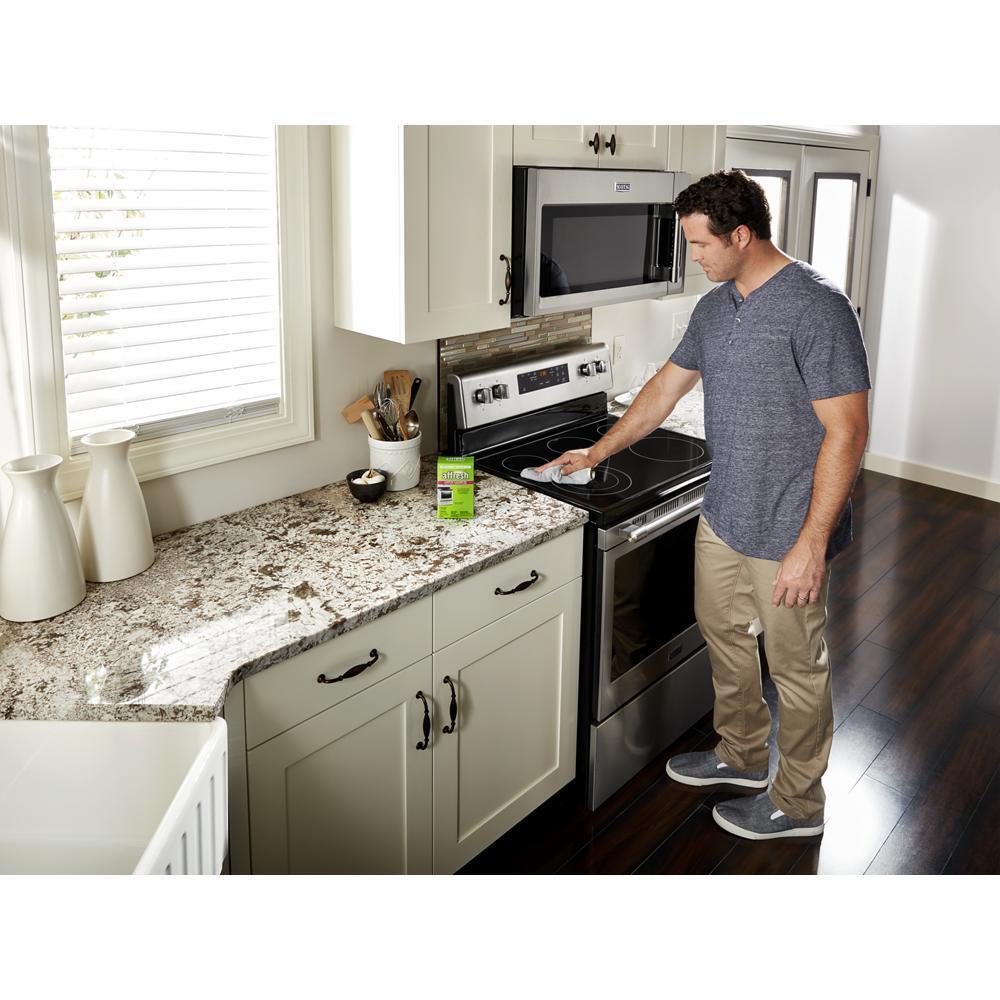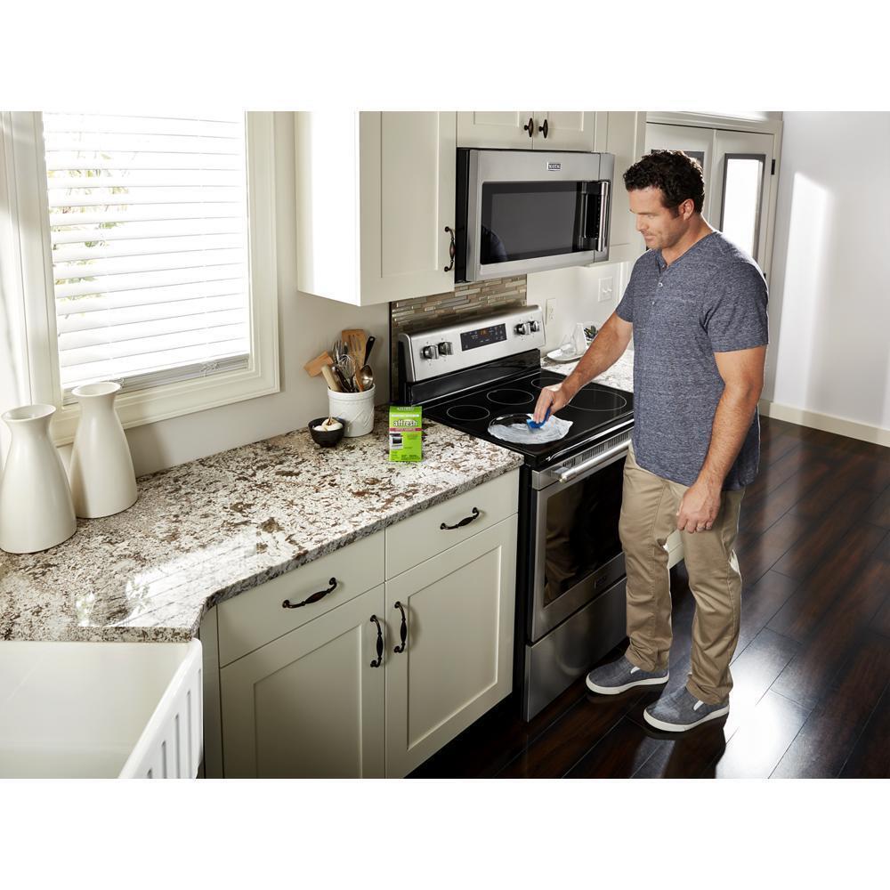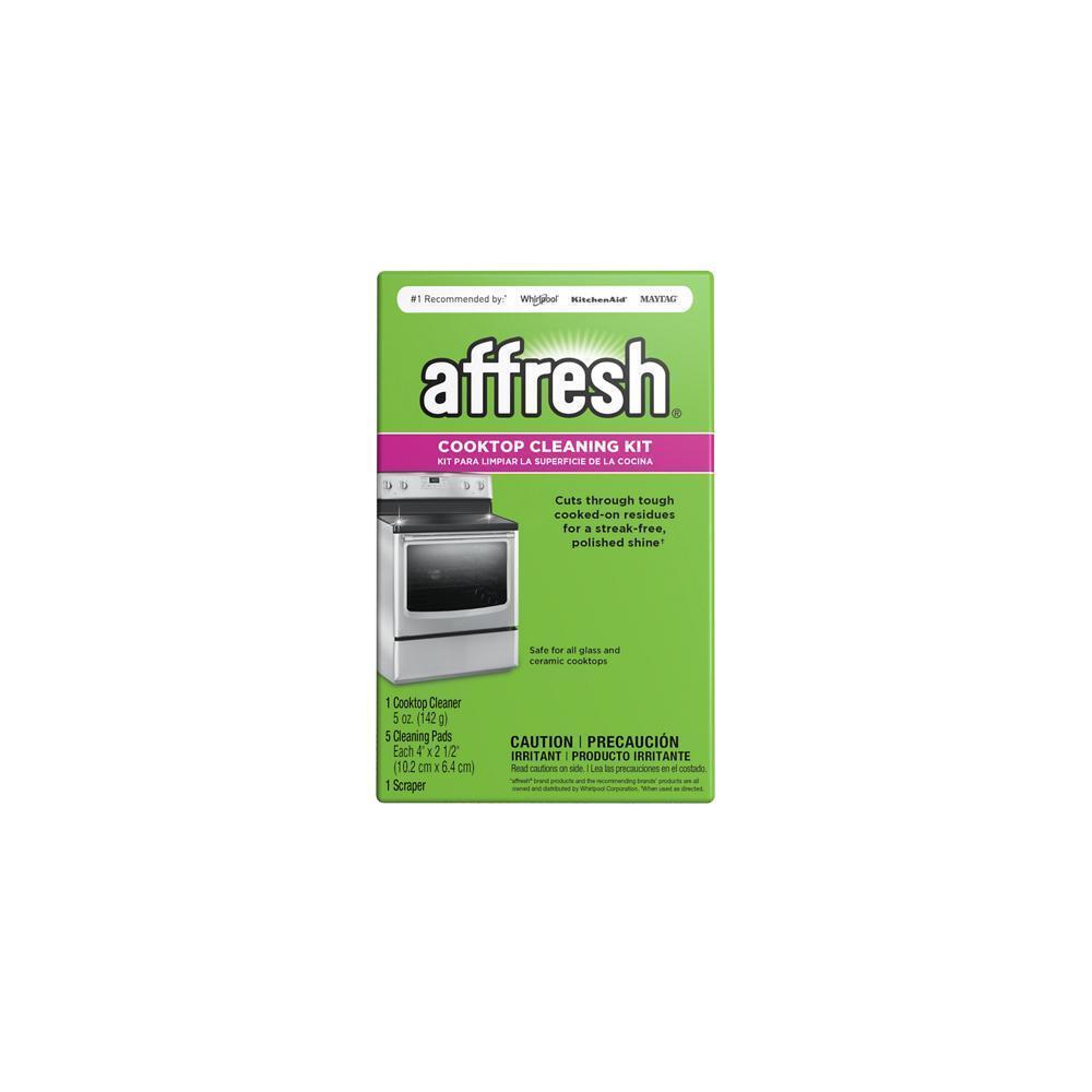 affresh® Cooktop Cleaning Kit includes a scraper and scrub pad that remove build-up and cooked-on spills without scratching or harming your cooktop surfaces and a non-abrasive cleaner that is safe for all glass and ceramic cooktops. Use monthly or as needed to polish your cooktop and keep it looking like new.