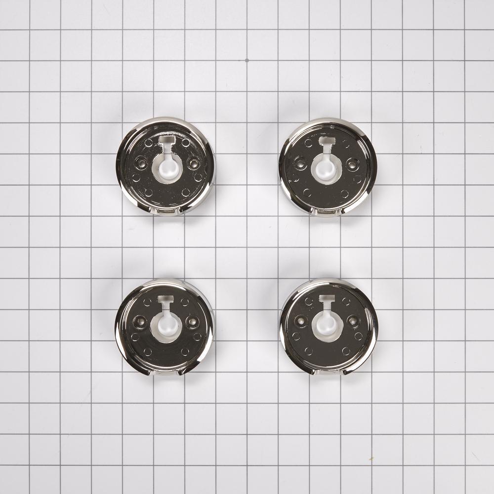 Model W11323062 Range Chrome Knob Bezel customizes the look of your range. This cool, chrome-finished bezel easily fits behind your oven's surface or Grille burner knob, creating a complementary all-chrome look for your appliance. Each bezel is sold separately and measures 3-IN D. This accessory is designed to be used with JennAir® ranges; check to see if your model number is compatible. Replacing this accessory will require no disassembly or repair experience. Make sure you unplug the oven or shut off the house circuit breaker for the appliance before installing this part.