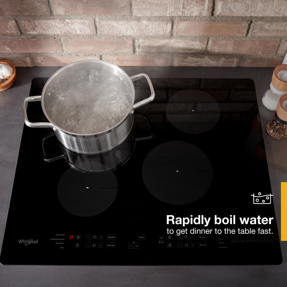Cook dinner quickly thanks to this small space induction cooktop that boils water fast and offers Quick Cleanup. Also, when using dedicated cookware, optional assisted cooking features allow you to use your time more efficiently prepping other dishes.