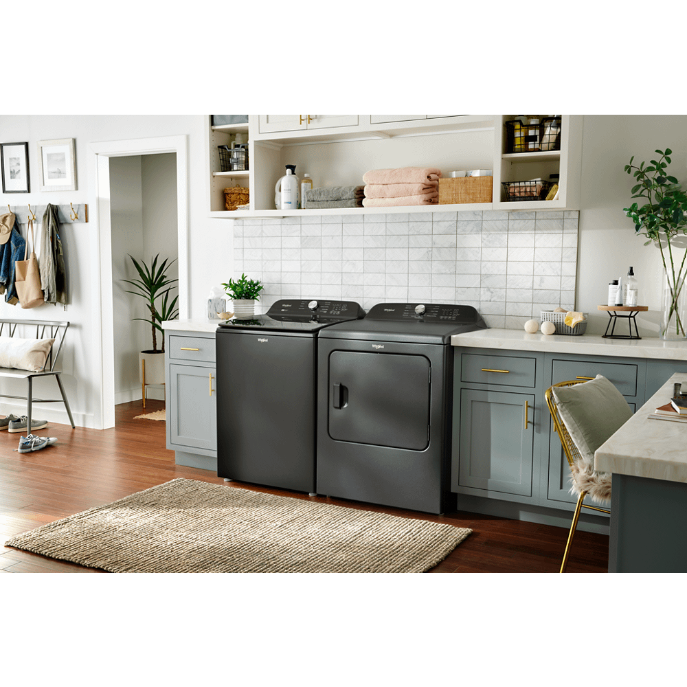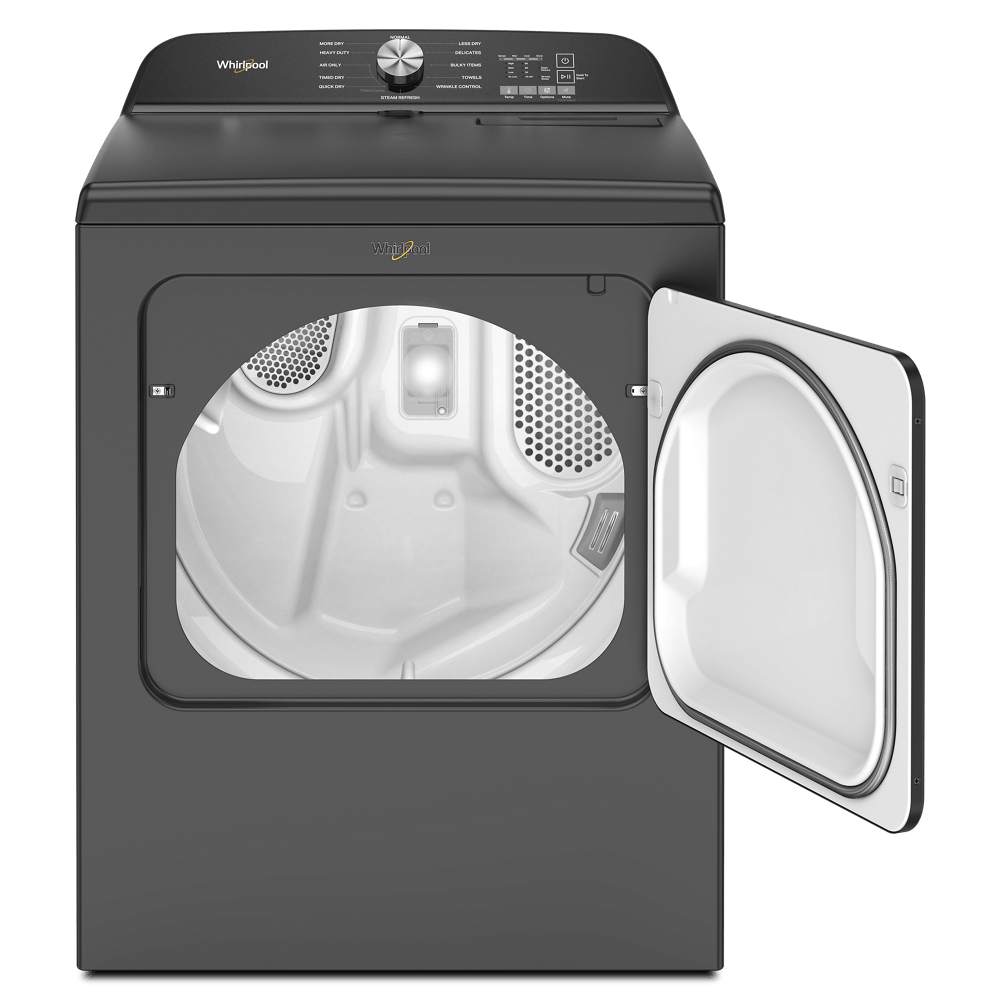 This Whirlpool® 7.0 cu. ft. Top Load Dryer uses Moisture Sensing to help prevent overdrying by stopping the load at just the right time and features an Air Only Cycle that tumbles your items without using heat. Release wrinkles without rewashing loads with the Steam Refresh Cycle that uses water and heat to get clothes ready to wear. Easily keep loads going on your schedule with the Wrinkle Shield™ Option which continues tumbling for 150 minutes after the cycle ends or use Timed Dry for extra drying time when you need it.